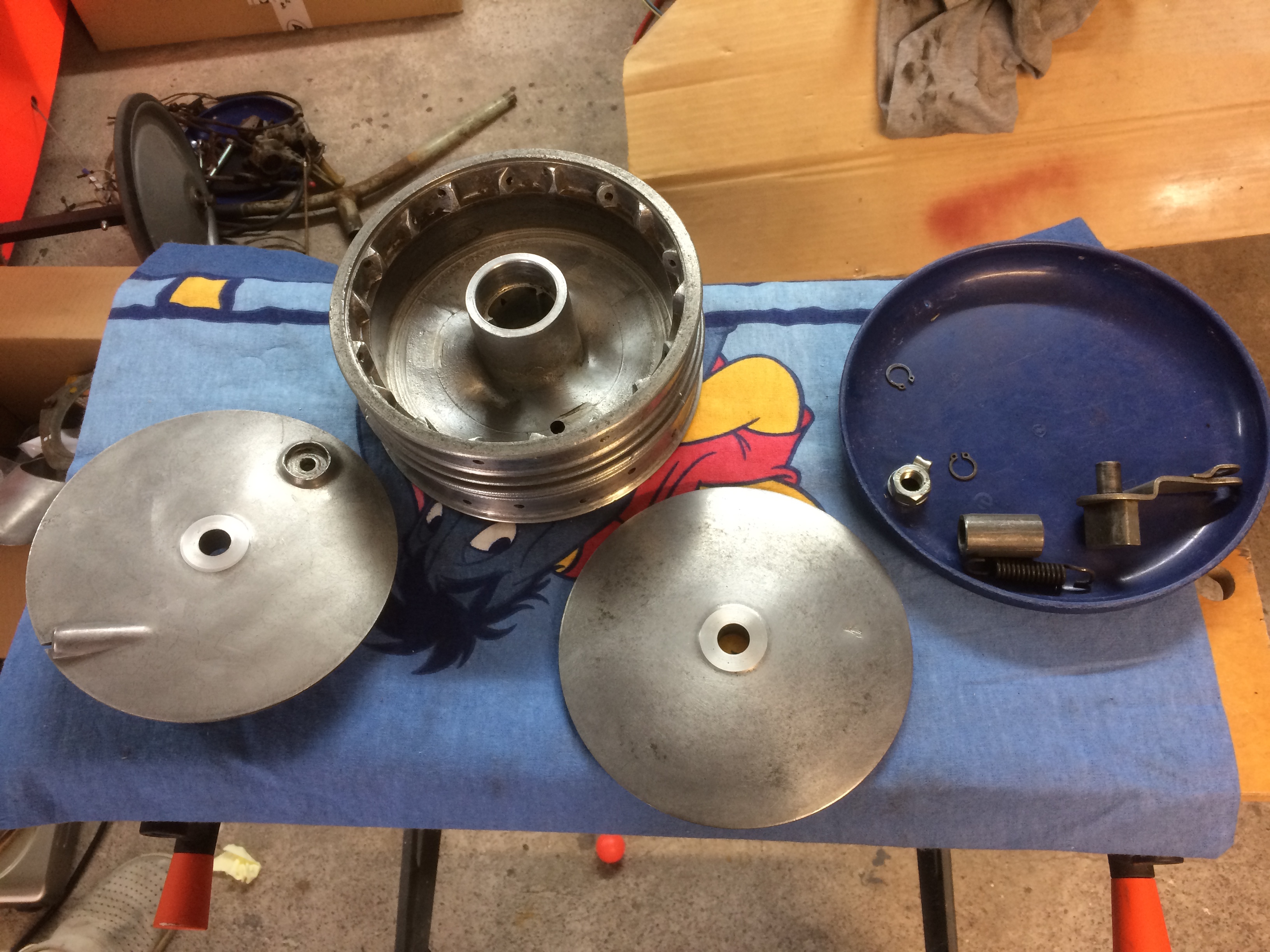 Der Star lag dann in Einzelteile zerlegt jahrelang in meiner Scheune. Letzten Februar habe ich die Teile dann sandstrahlen lassen und pulverbeschichten.