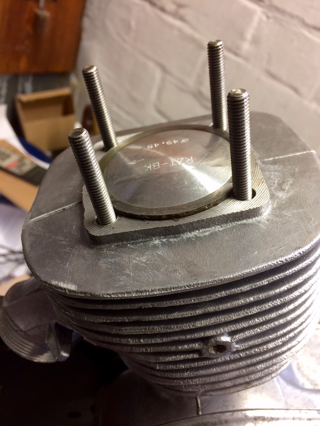 Das Zylinderkit ist auch drauf. OT und UT sehen soweit stimmig aus. Der Kolben läuft nicht wie gedacht über die Laufbuchse hinaus. Wäre mal interessant zu wissen was RZT alles am Zylinderkit geändert hat.