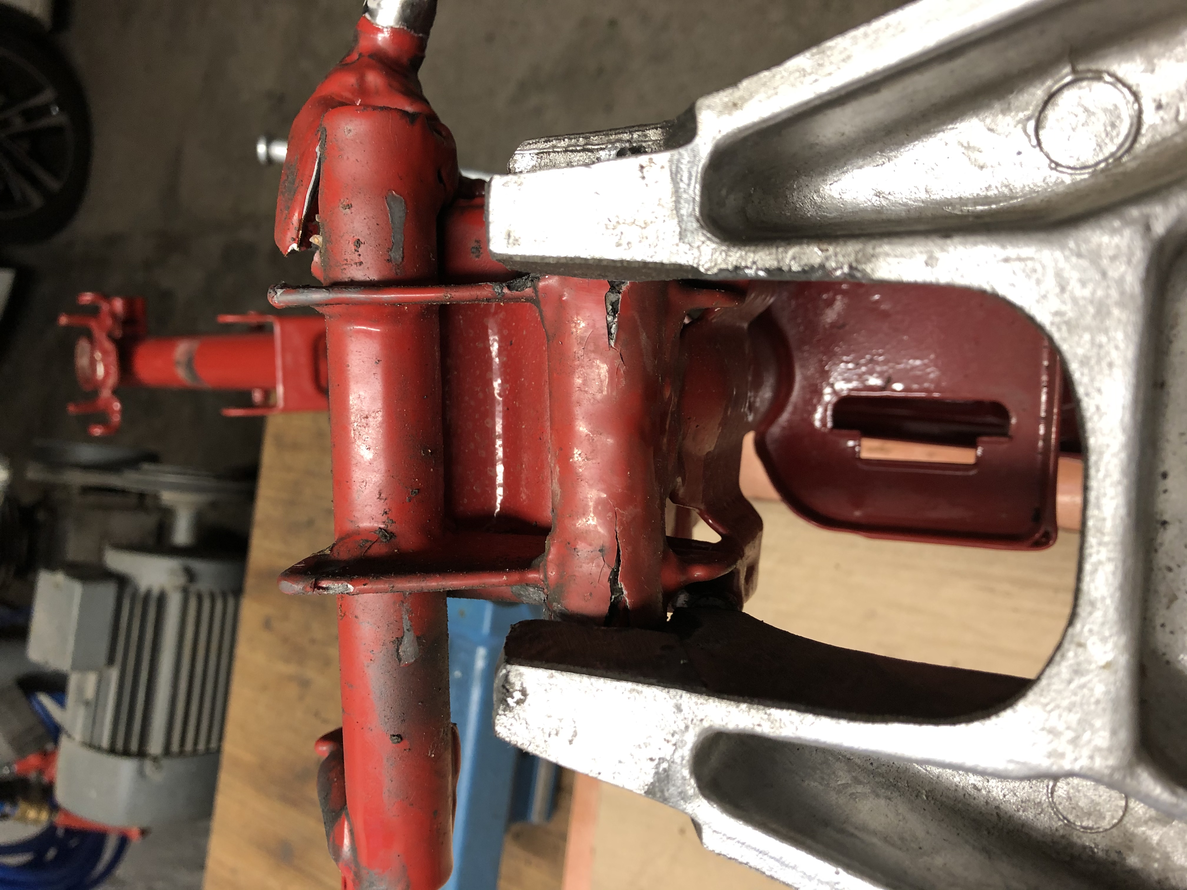 Fussrastenträger und Ständerrohr sind Schrott. Mittlerweile sind die defekten Teile draußen und der Rahmen ist gestrahlt (nie wieder Pulver am Vogel). Aktuell warte ich auf den Lackierer. -