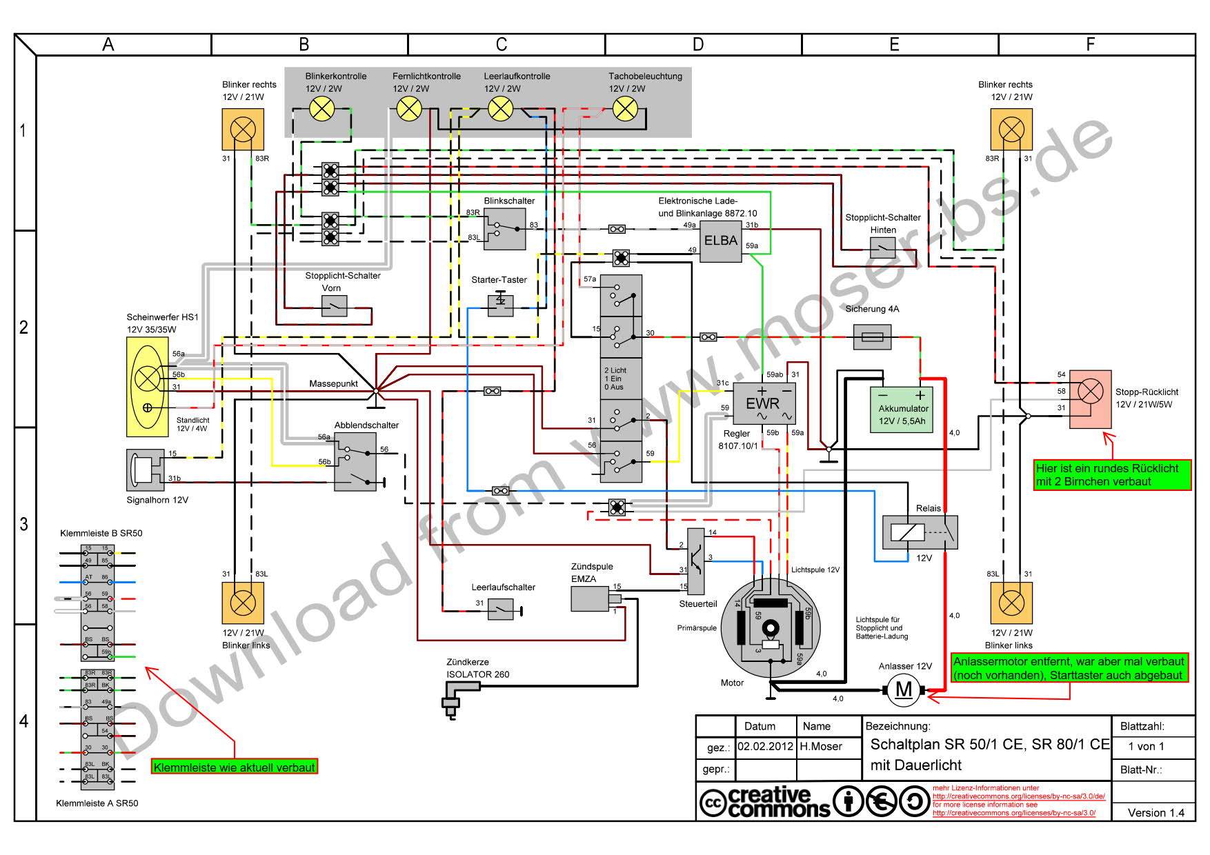Wie dem auch sei, laut Klemmleiste, Baujahr, verbauten Elektronikteilen, Motornummer, etc. habe ich einen SR50/1 CE, also auch mit Anlassermotor.