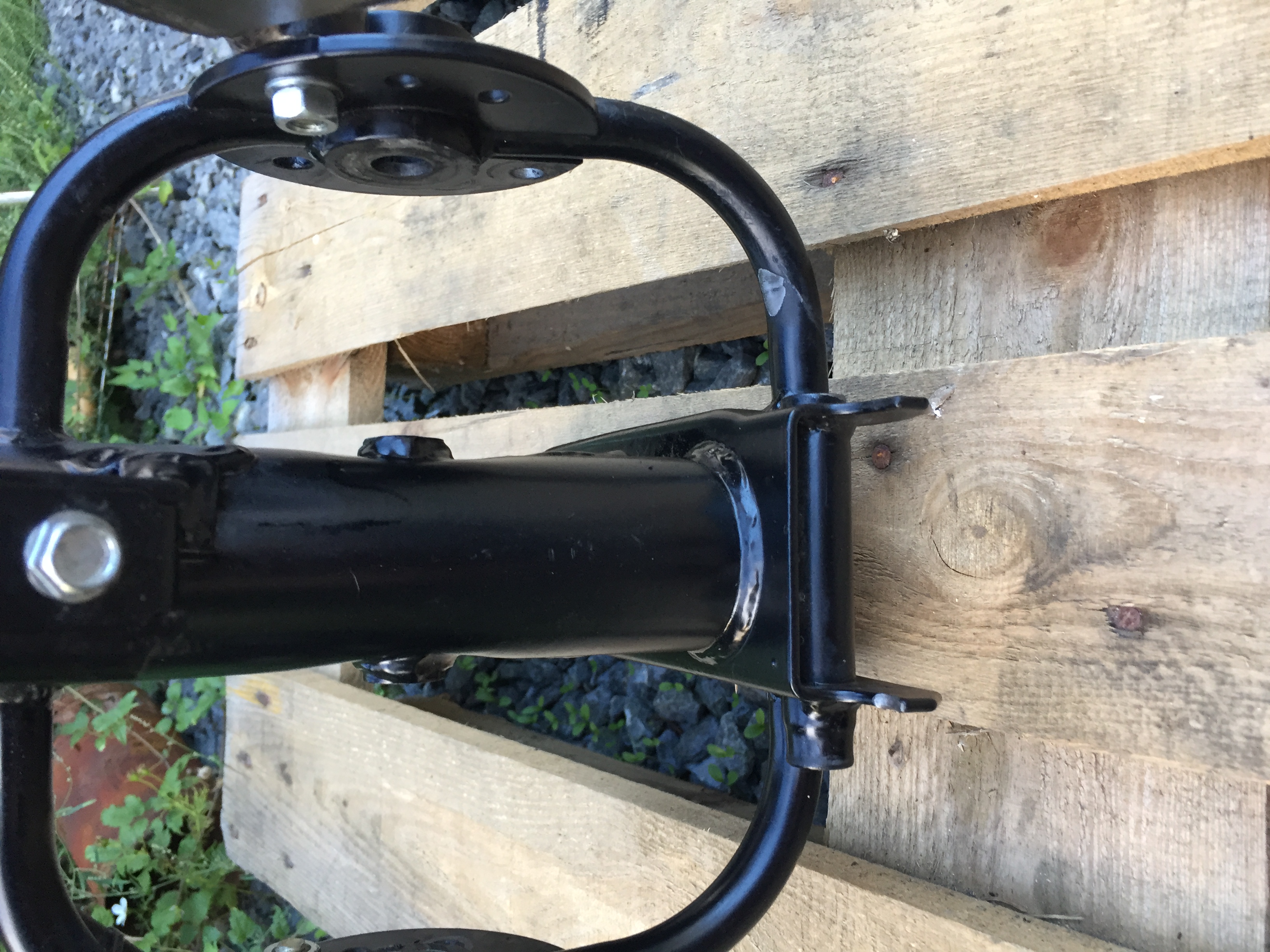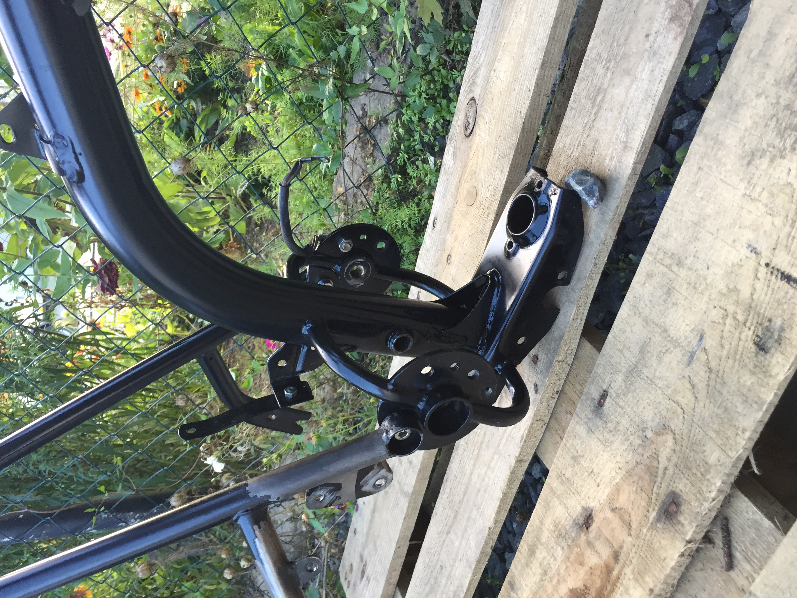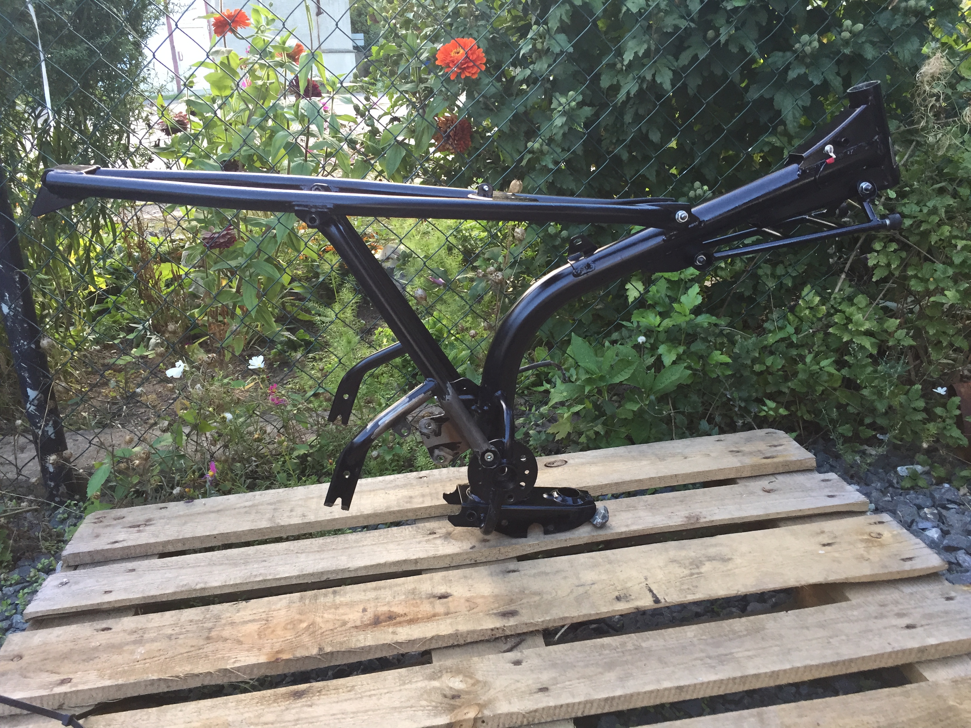 Bilder von der Schwingbolzenabstützung, Fußrastenaufnahme und Versteifungen am Hauptrahmen wären super.