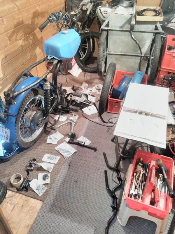 Bin inzwischen ein gutes Stück vorangekommen mit dem Neuaufbau. Hatte ja eine komplette Polin und ein Ersatzteillager gekauft. Es hat sich inzwischen gezeigt, dass bald alle Ersatzteile besser sind :thumbup: als die Kurwa. Die ist echt gemeingefährlich :( , alles nur locker handfest verschraubt, alle Lager total verschlissen, einige Teile gar nicht fest oder kaputt.... :wallknocking: