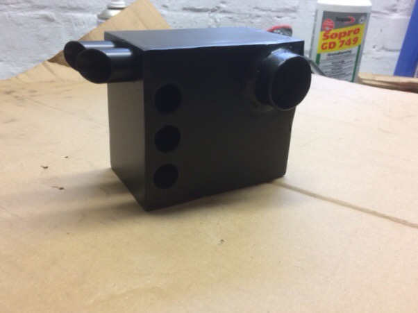 Verbindung zum Vergaser ist Schwalbe Stutzen und MZ Muffe.Der Kasten nimmt den kompletten Platz der Batterie ein.