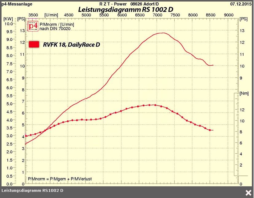 Ich musste irgendwann lernen, dass die Leistung nicht von ungefähr kommt. Bei unverändertem Hubraum muss die Leistung zwangsläufig über Drehzahl kommen, denn die Steigerung des Drehmoments ohne den Hubraum zu verändern ist nur begrenzt möglich. Leistung über Drehzahl zu gewinnen bringt allerdings gewisse Nachteil (gerade im Strassenverkehr) mit sich. Die da z.B. wären: Keine Leistung im unteren Drehzahlbereich, schmales Band, geringere Haltbarkeit, hoher Verbrauch, das Gesamtsystem wird schwieriger abzustimmen.