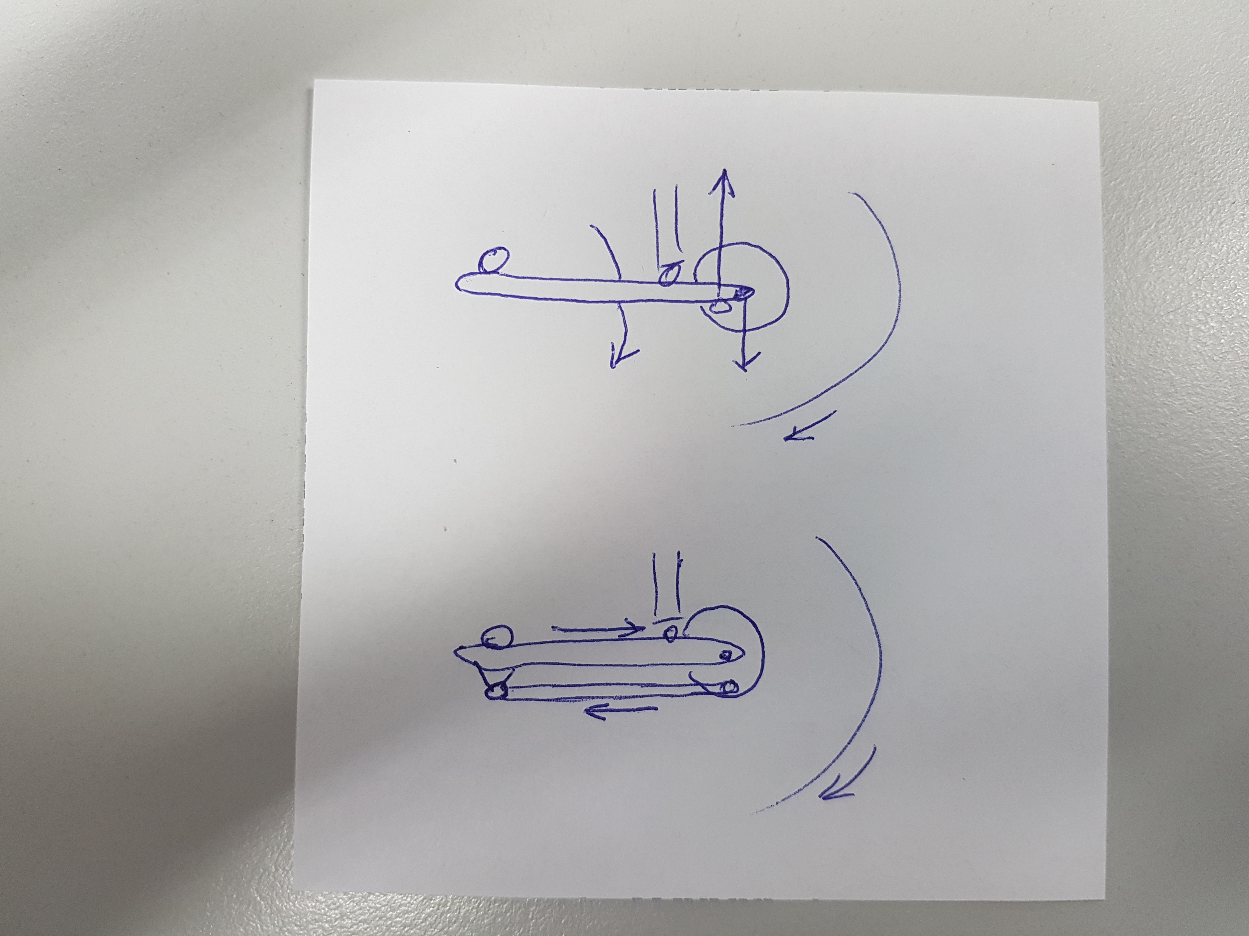 . In der Dämmerung kommt der Grünstich schön durch, bei Sonnenschein sieht es fast so aus wie auf Renaes Bild..Zur Bremse: Theoretisch müsste man doch die Kraft umlenken, so dass diese unkritischer auf den rechten Schenkel wirkt. Aktuell ist es eine Biegebelastung. Durch eine andere Abstützung der Bremsplatte könnte man die Kraft in Druck & Zugspannung umlenken, hier mal ne Skizze: