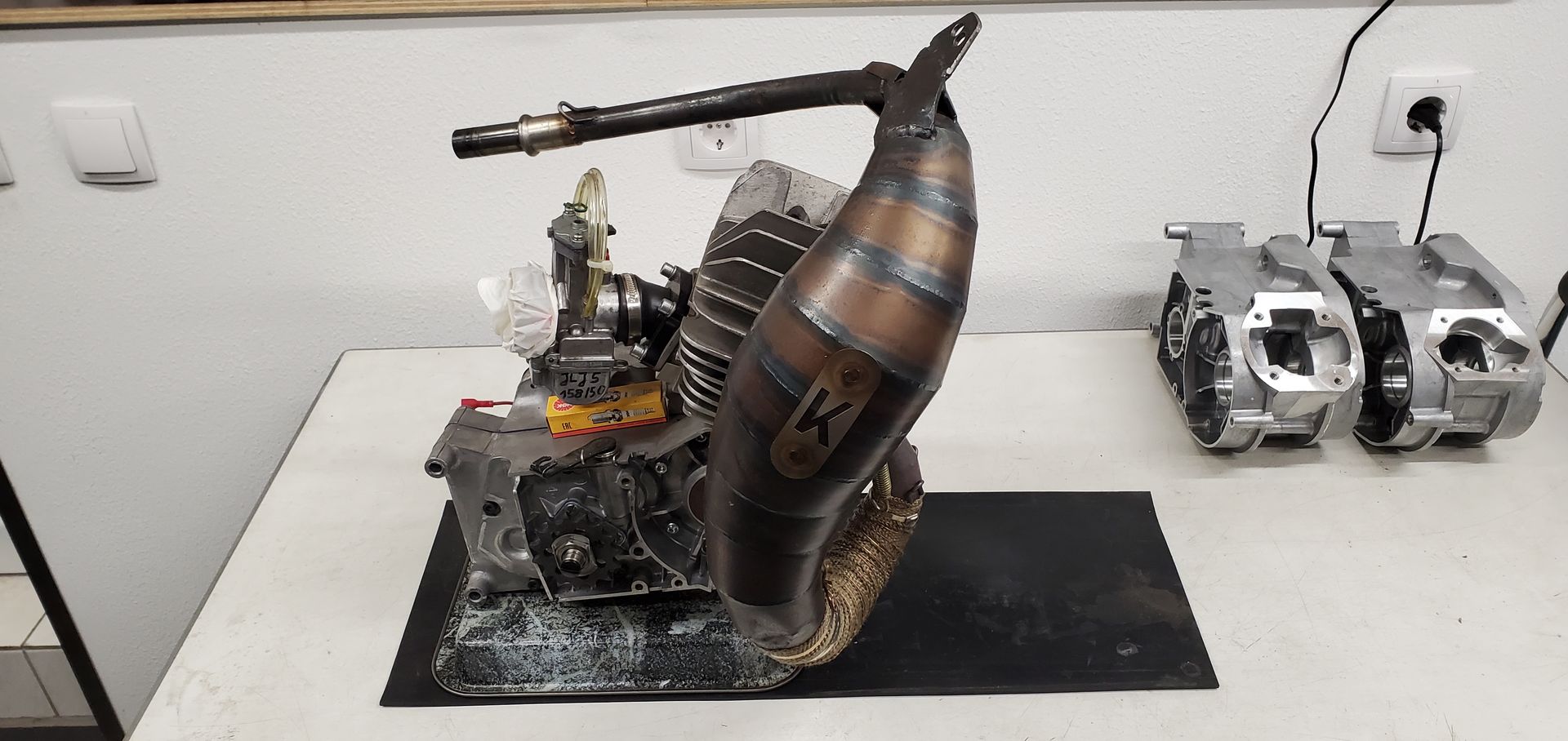 Dieser bekommt aktuell den ersten neuen Kolben und der Motor den ersten Ölwechsel. Für den Zylinder habe ich eigens einen Auspuff nach Maßen von K-Racing im CAD konstruiert und lasern lassen, dann ge- und verbaut.