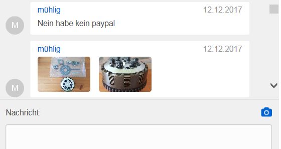 Naja, mir hat er noch geschrieben sie stamme aus seinem Rennmoped... Nuklar, teure Teile in ein Rennmoped stecken, aber nicht selber über sein Konto verfügen können, dazu noch zeitgleich mehreren Leuten Abholung zusichern, der ist sicher sehr seriös