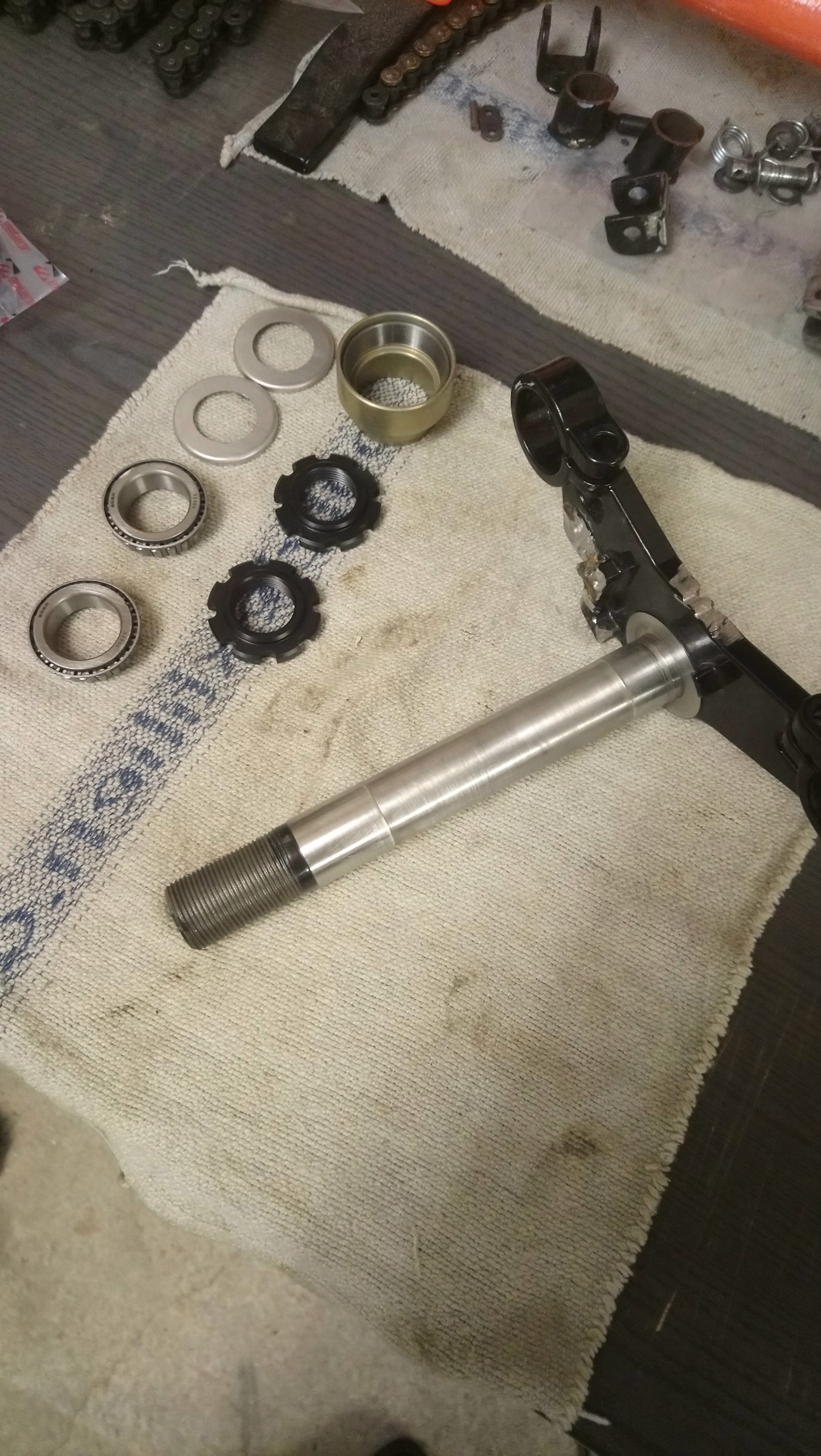 Voller Vorfreude alles zusammengesteckt, Gewinde vom Lenkrohr reicht jetzt aus für alles, doch dann viel mir eines auf.....Mein oberes Lager kann das Lenkrohr garnicht führen, da es ja auf Höhe vom Gewinde sitzt. Also klappert das ganze im oberen Lager einfach so rum.