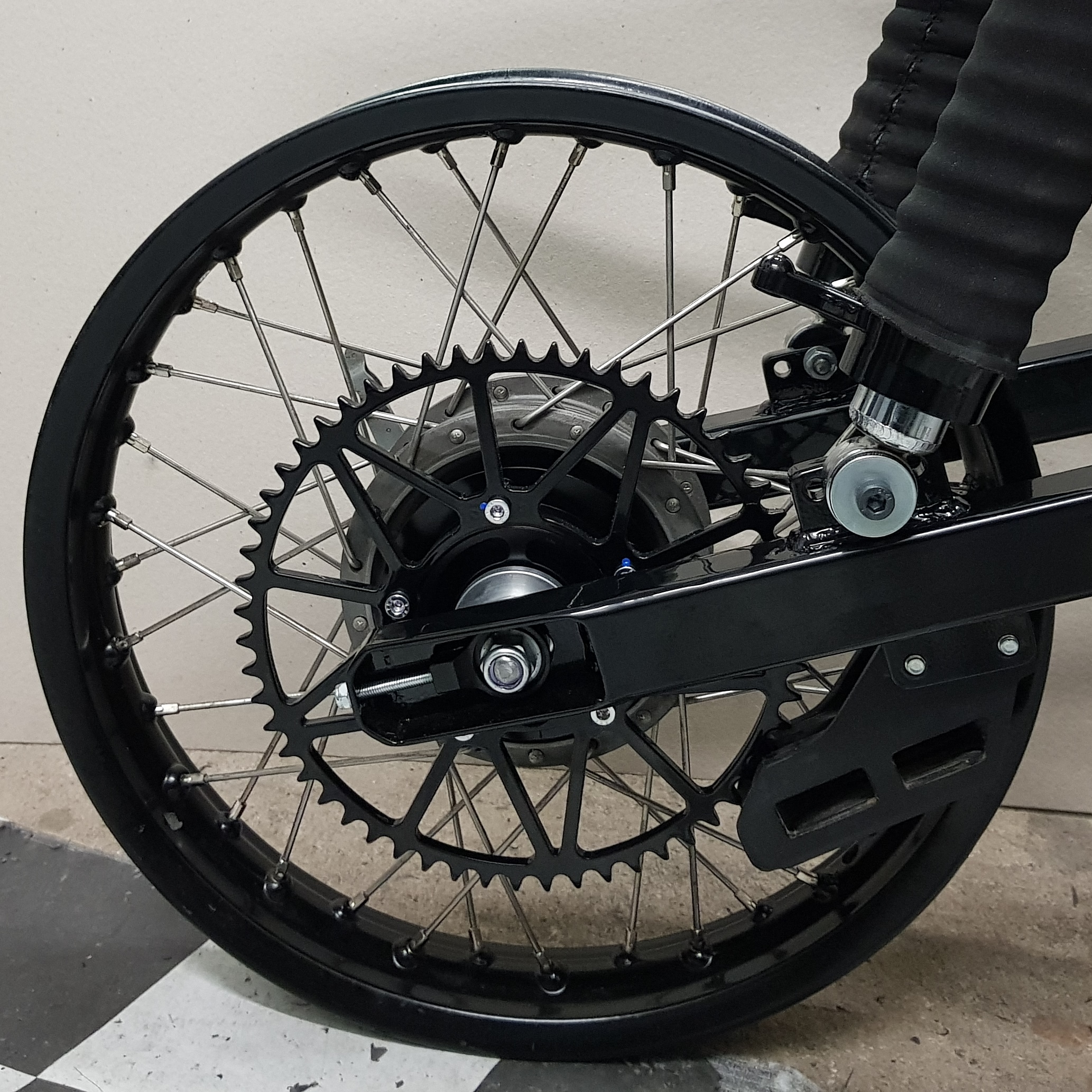 Hinterrad hat noch breitere Radlager, verstärkte Nabe und verstärkte Speichen bekommen.