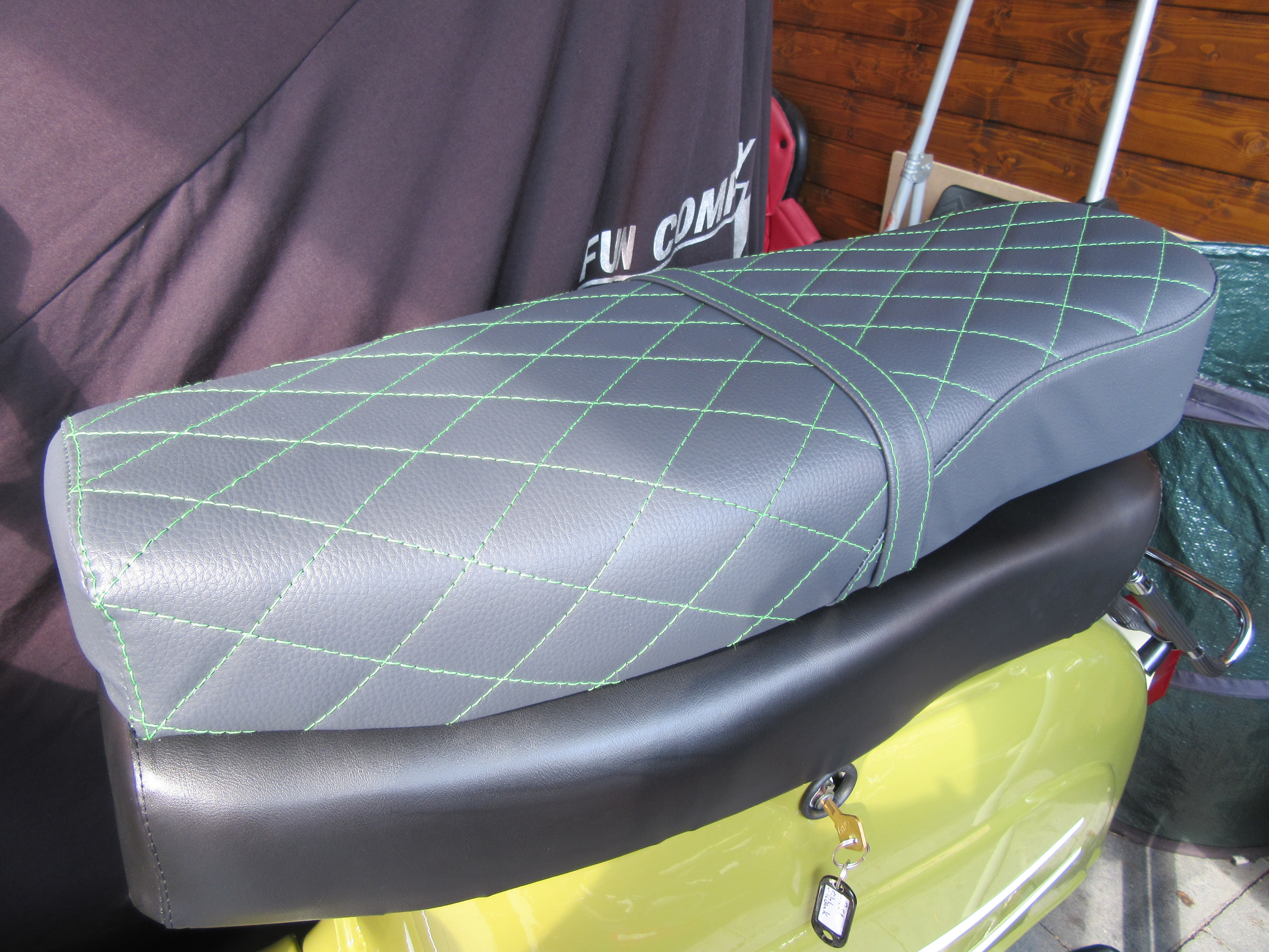 Heut hab ich noch die Sitzbank zusammengesetzt. Da auf meiner S51 das Nachbaupolster echt Mist ist, habe ich mir eins aus Verbundstoff besorgt. Der Bezug ist vom Sattler und alles Zusammen sieht schon gut aus. Freu mich schon drauf Platz zu nehmen. Jetzt muss ich wohl auch noch ne "stylische" für die KR51 holen, da meine Frau ja auch sanft sitzen will... ![]()