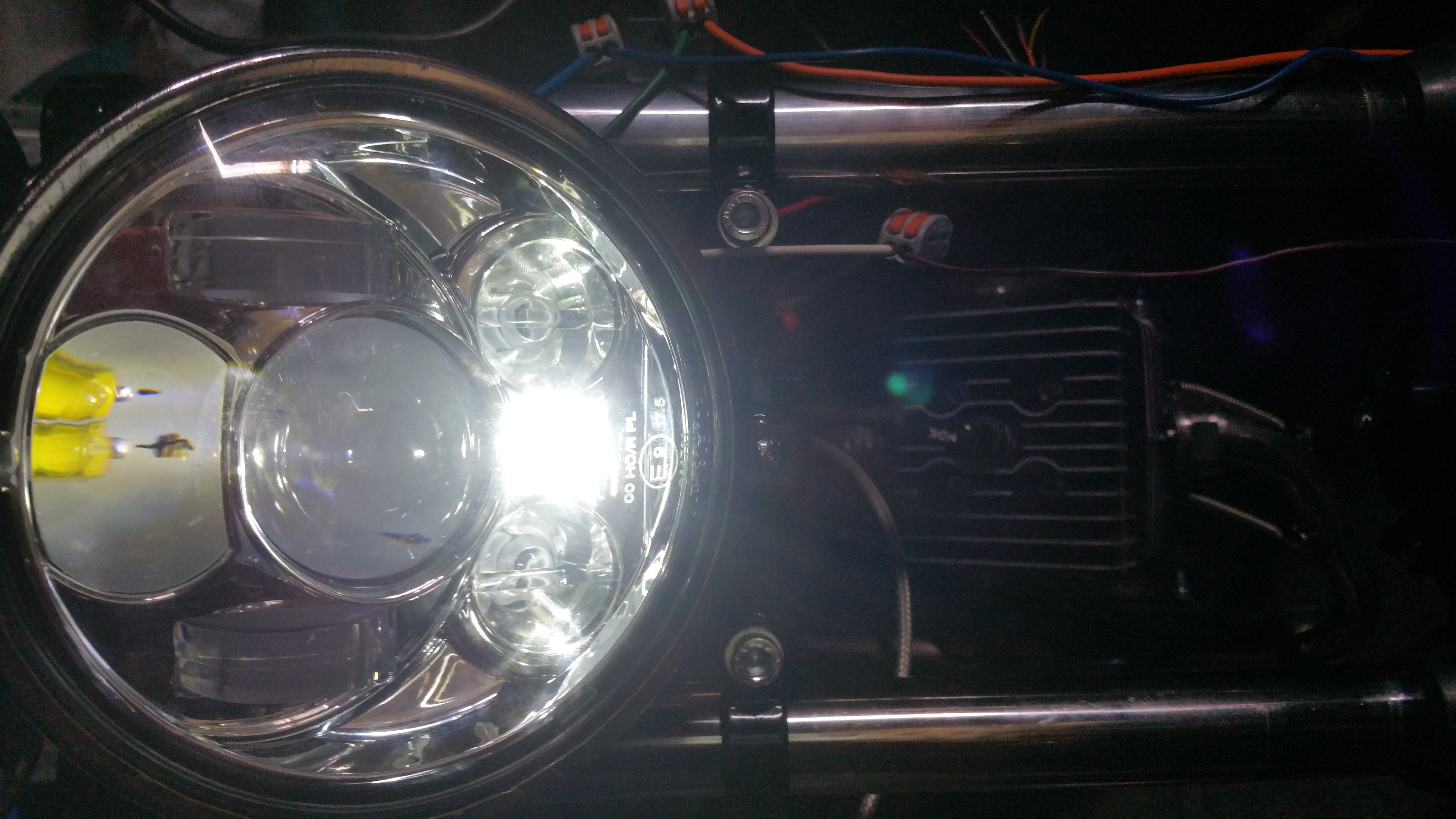 In den normalen S51 Scheinwerfer wie auch in die S50 Tittenlampe passen so ziemlich alle 5 3/4" Scheinwerfer. Bei S51 geht's etwas eng zu, aber geht. Bei dem HS1 Scheinwerfer bin ich mir nicht sicher, da dieser sich nach hinten stark verjüngt.Hier mal im S51 Scheinwerfergehäuse.