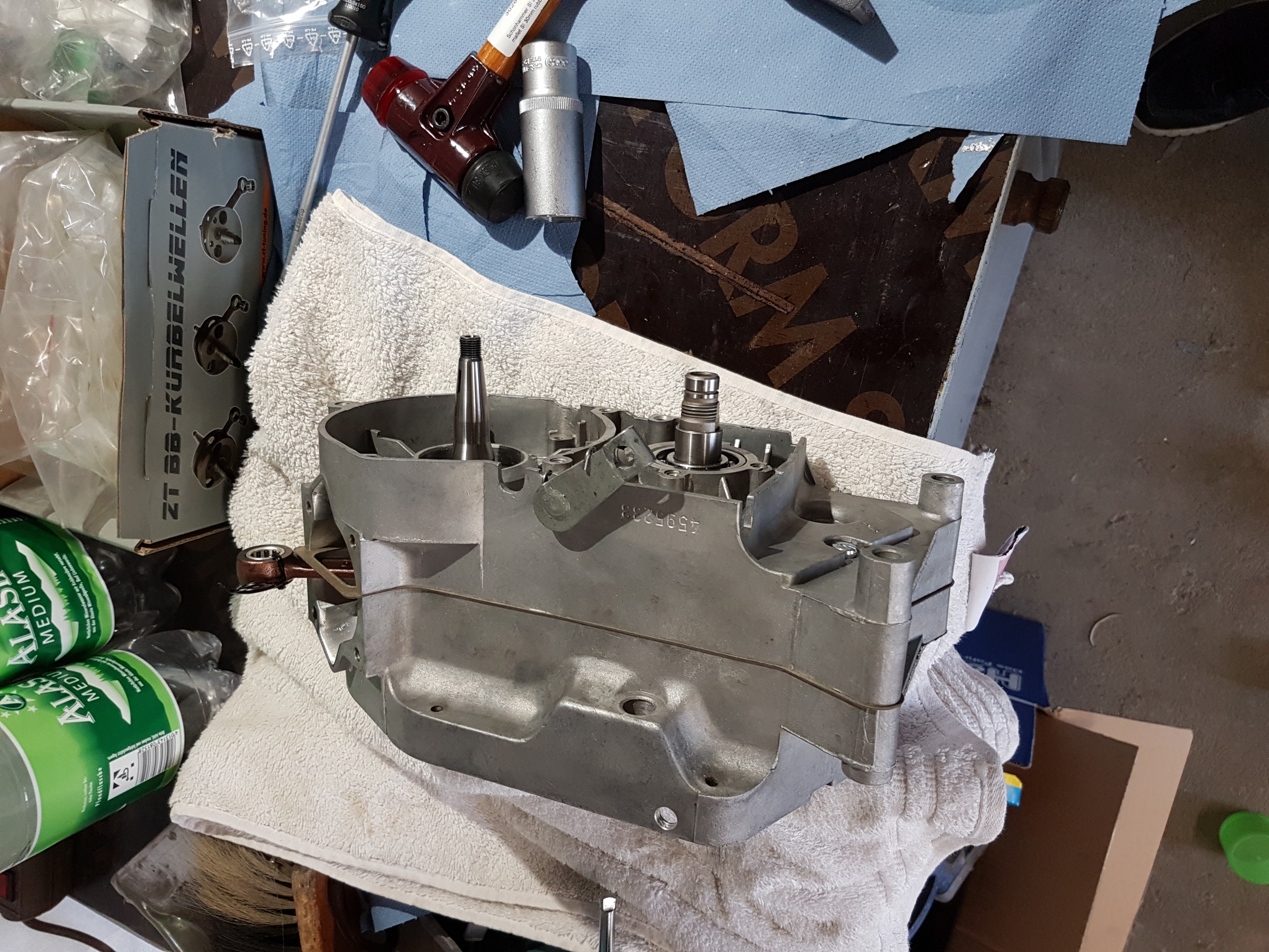 • Nachdem ich die grundplatte getauscht habe, läuft der hobel wieder wie ne eins. Wollt im stand paarmal durchschalten, aufeinmal konnt ich nicht mehr hochschalten. Ich hatte schon den verdacht, das sich der kleine seegering verabschiedet hat. Also kurz getriebeöl abgelassen und deckel runter, da grinste mich schon der ring im deckel an. Kurz begutachtet und festgestellt das dieser maaßlich und von der härte abweicht vom original ddr ring, also den alten ddr ring rauf. Nach gefühlten 100 mal durchschalten, hält der ring. Ich hoffe nicht das dieser beim fahren runterspringt und ich deswegen irgendwo inner pampa liegen bleibe. Im nachhinein ärger ich mich das ich keine verschraubaren schaltwalzenbolzen verbaut habe.