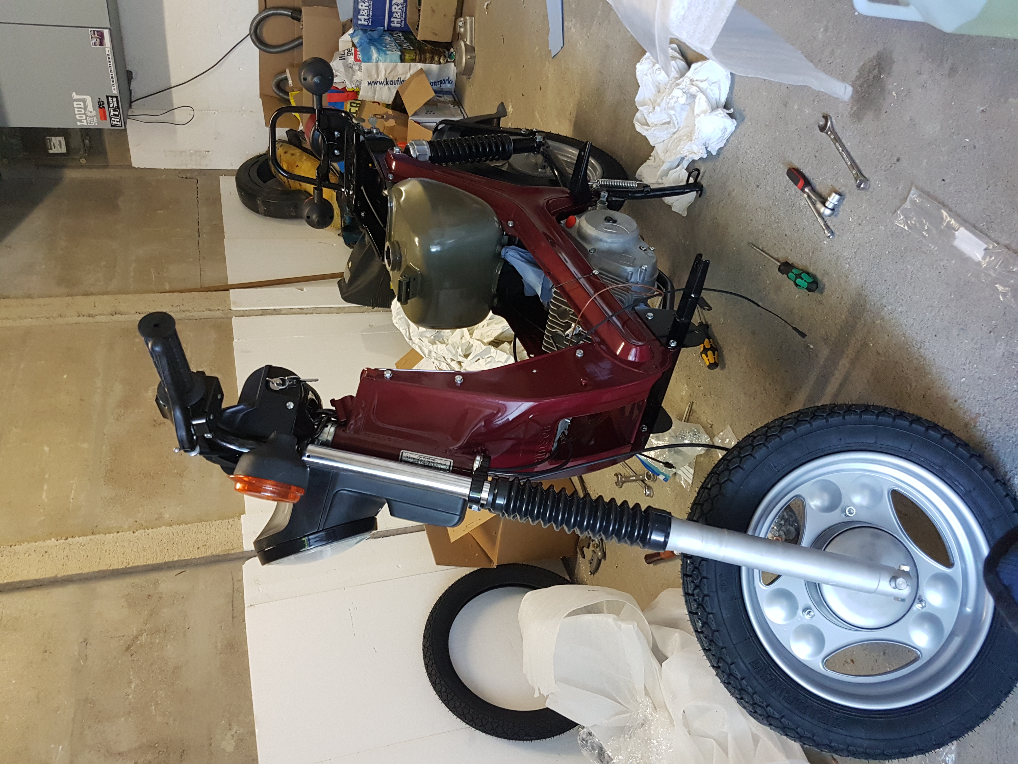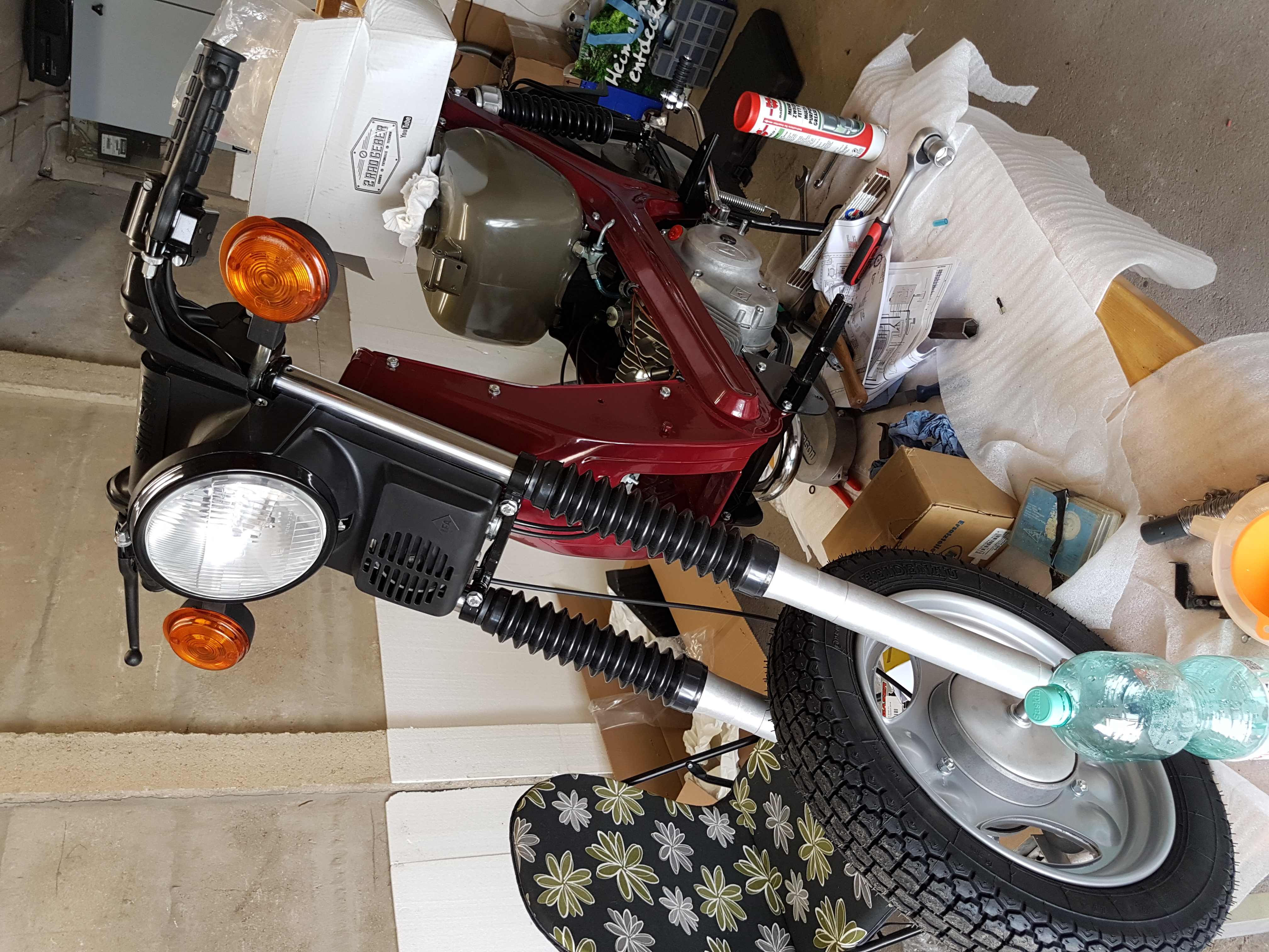 Ach mensch hab ganz vergessen das ich hier noch mein roller drinn hab:-D ja die stoßdämpfer hab ich zerlegt und die anbauteile gestrahlt und neu lackiert. Nach dem ich vor 3 wochen ein bandscheibenvorfall erlitten habe gings in letzter zeit nich so viel weiter, gestern war ih mal wider da und hab ihn das erste mal gestartet. Leider hielt die freude nicht länger an und der roller ging aus. Hab dann alles durchgemessen und siehe da, die grundplatte hat ein wackler. So ist es wenn mann sich ne gebrauchte serien pvl zündung bei kleinanzeigen kauft^^. Hab gestern ne neue grundplatte geordert und sie kommt morgen an. Mal gucken ob dann alles läuft.