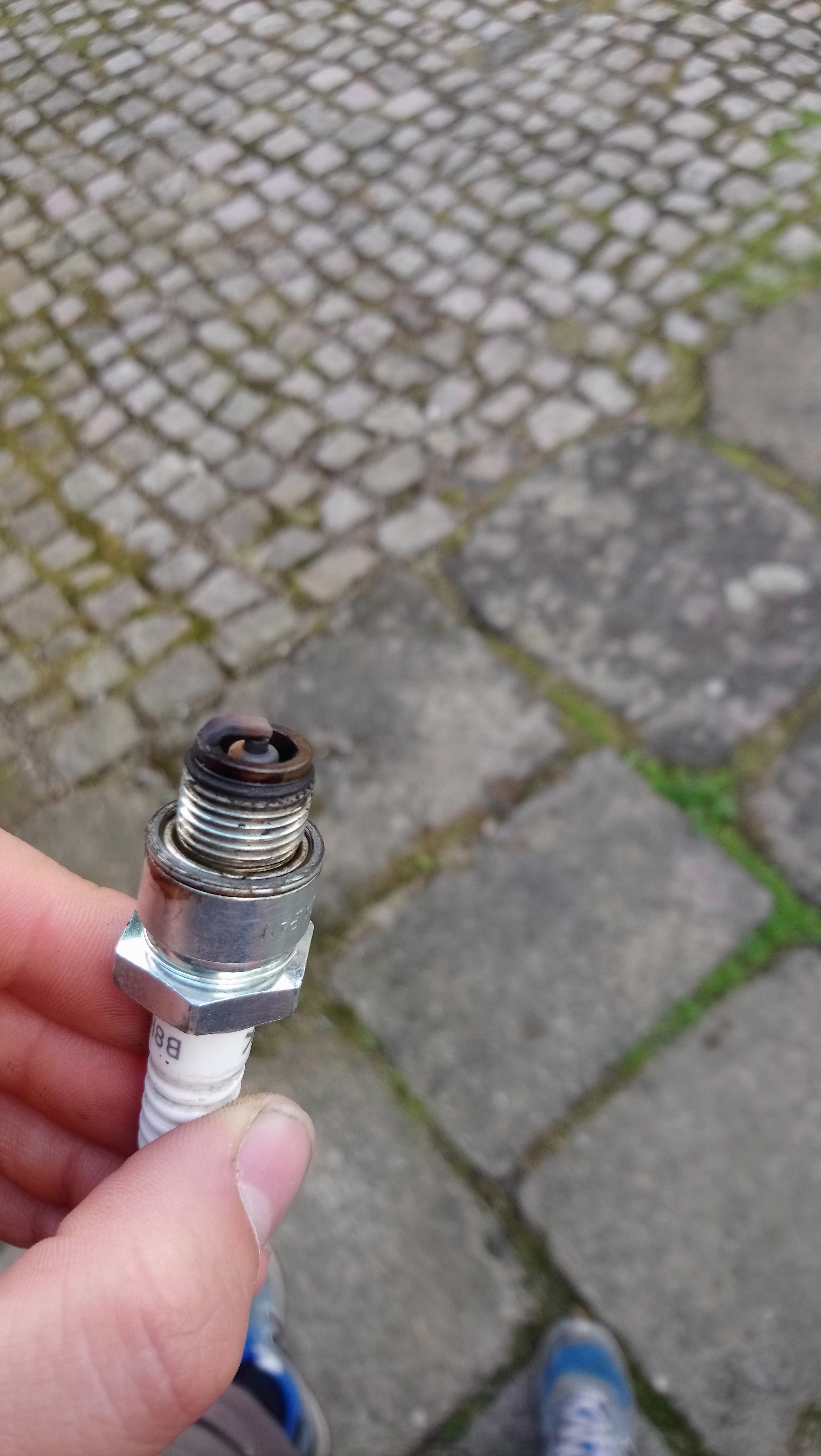 Eine Zeit lang so gefahren und nach einer längeren Überlandfahrt Kerze kontrolliert. Diese war grau weißlich.