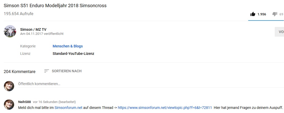 Ich hab ihm eine Nachricht auf Youtube hinterlassen
