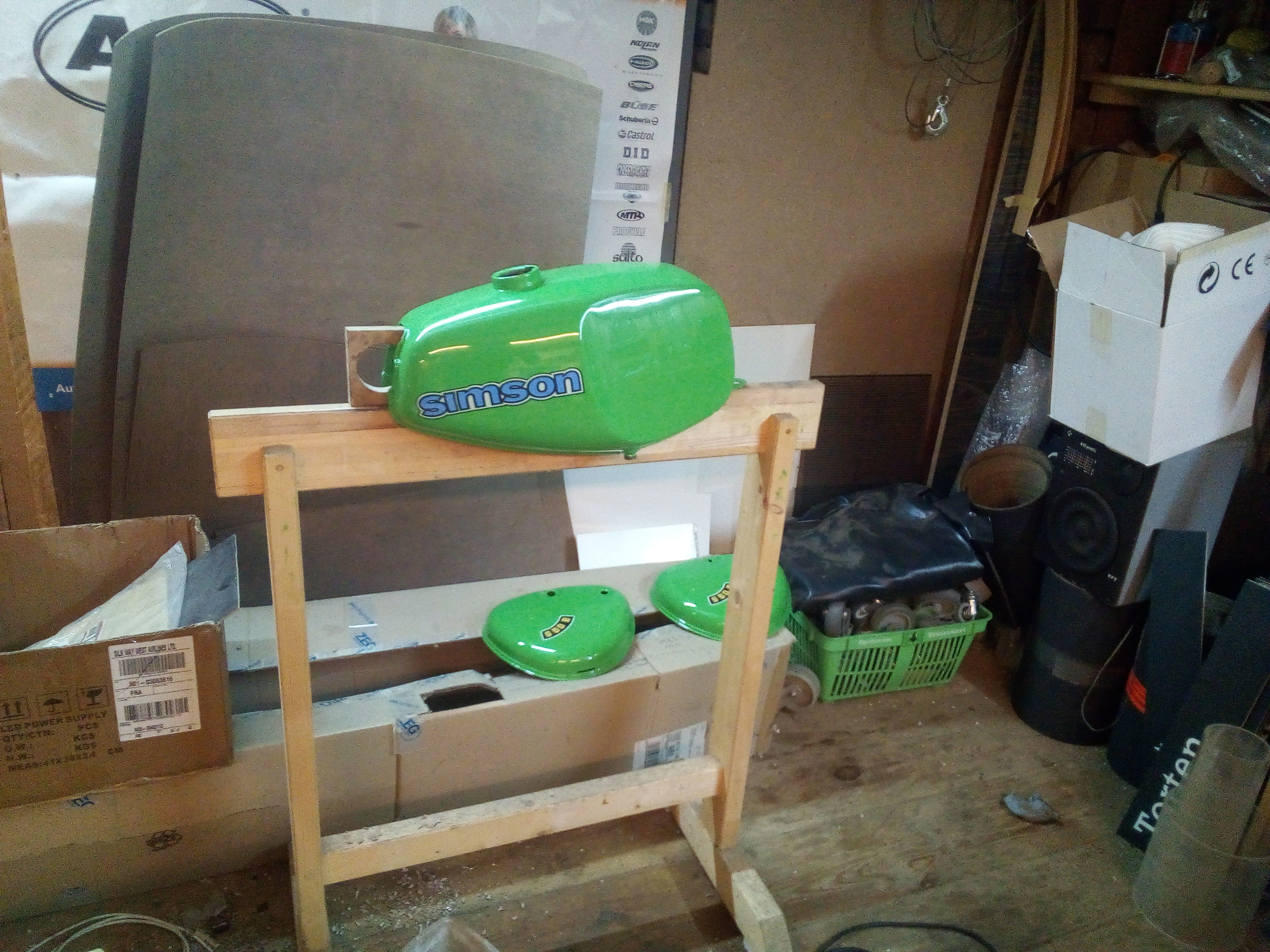 Kann mal jemand mit original Lackset eine Wasserwaage oä auf den Tankstutzen legen und die oberkante der Abziehbilder ermitteln.