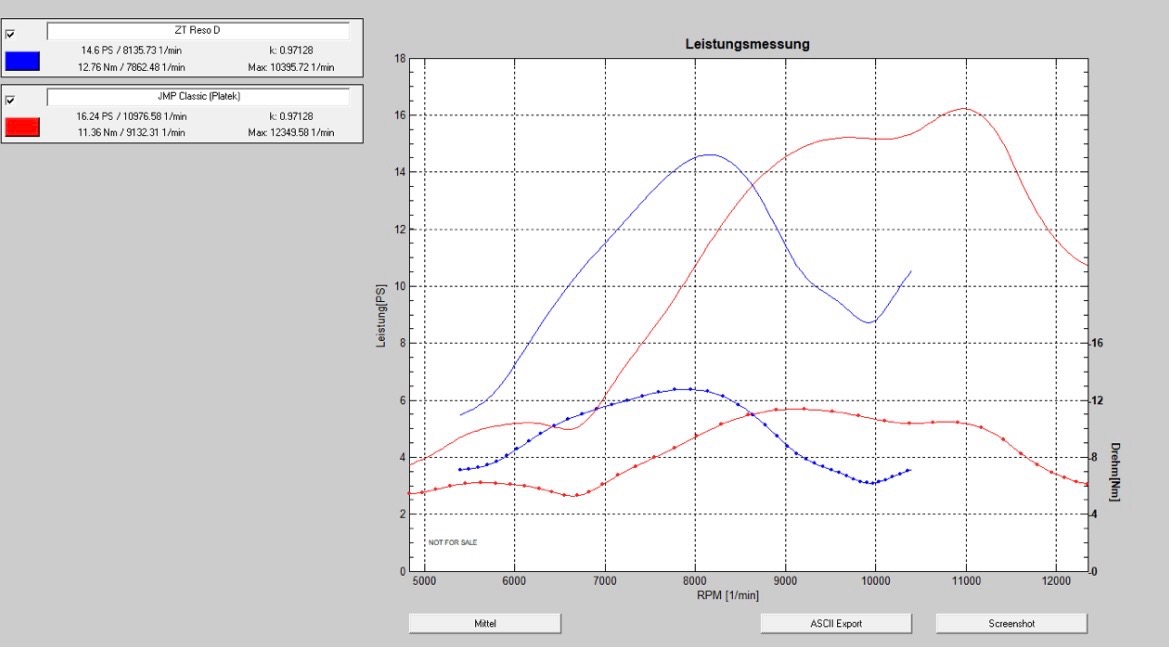 • Habe heute den ZT-Reso D durch den JMP Classic von Platek/Jackmotors getauscht und bei GSF Dyno einen Vergleich gefahren.