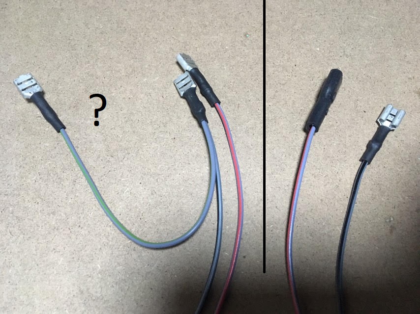 Das neuen Kabel hat aber nur ein Kabel für diesen Weg und zweigt an einem Ende ab -> siehe Photo links bei dem Fragezeichen