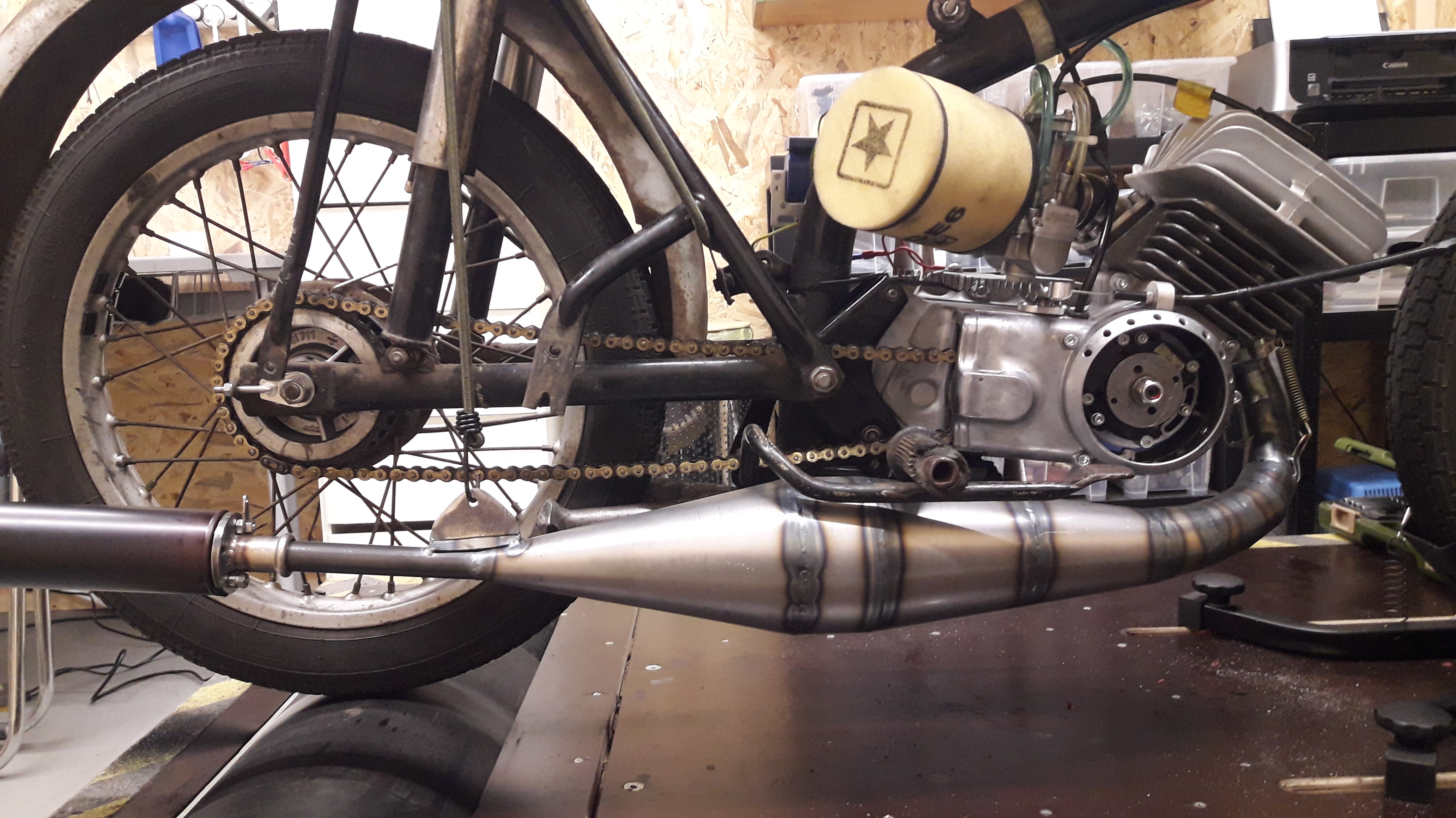 So habe ich auch für spätere Motoren einen sehr potenten Auspuff an der Stange hängen.