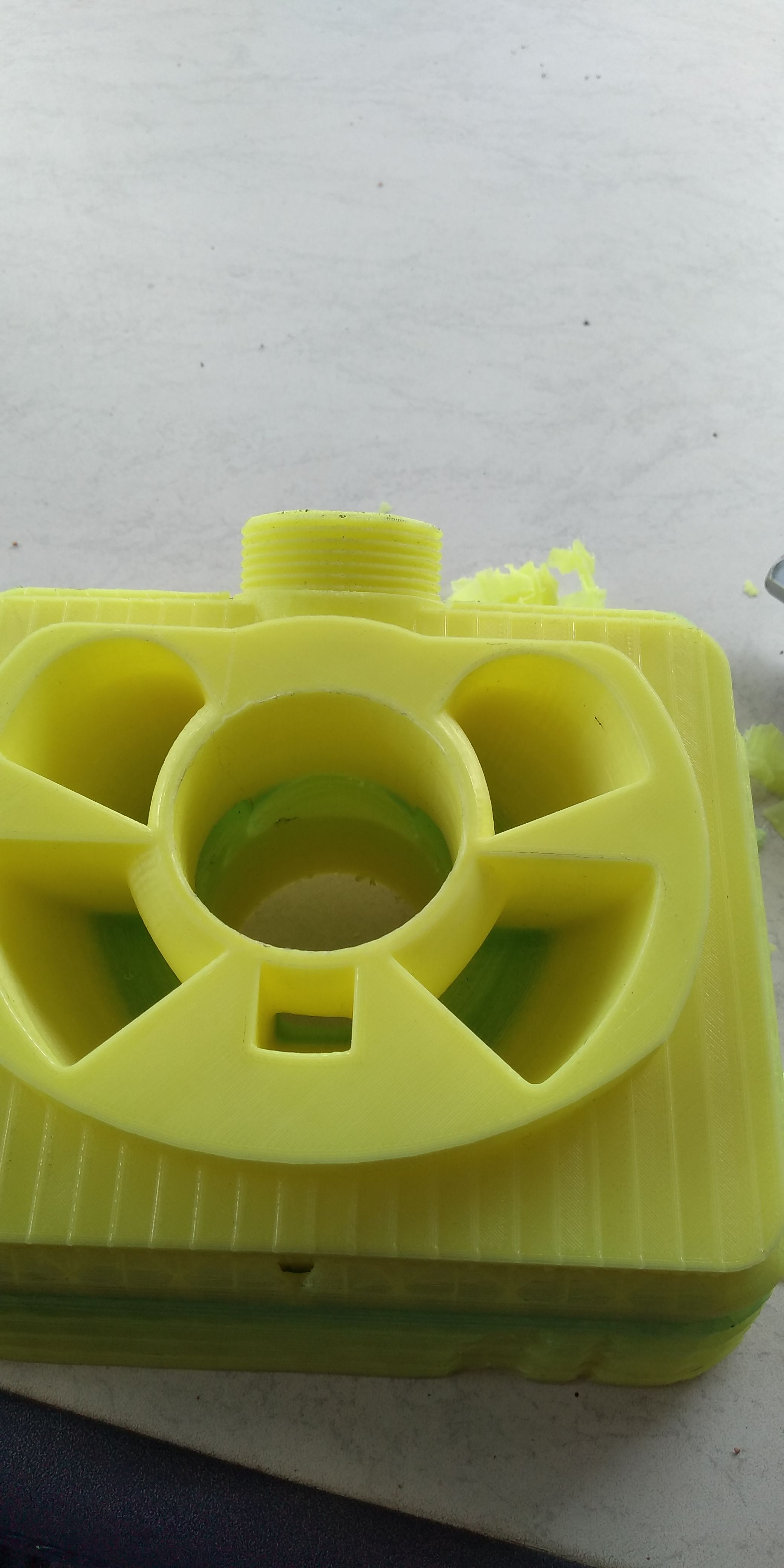 Auslass zu klein, Überströmer 3+4 müssen weiter ausgehöhlt und Richtung Auslass "gekickt" werden. Der 5. Kanal brauch mehr Führung. Insgesamt noch Fläche notwendig.