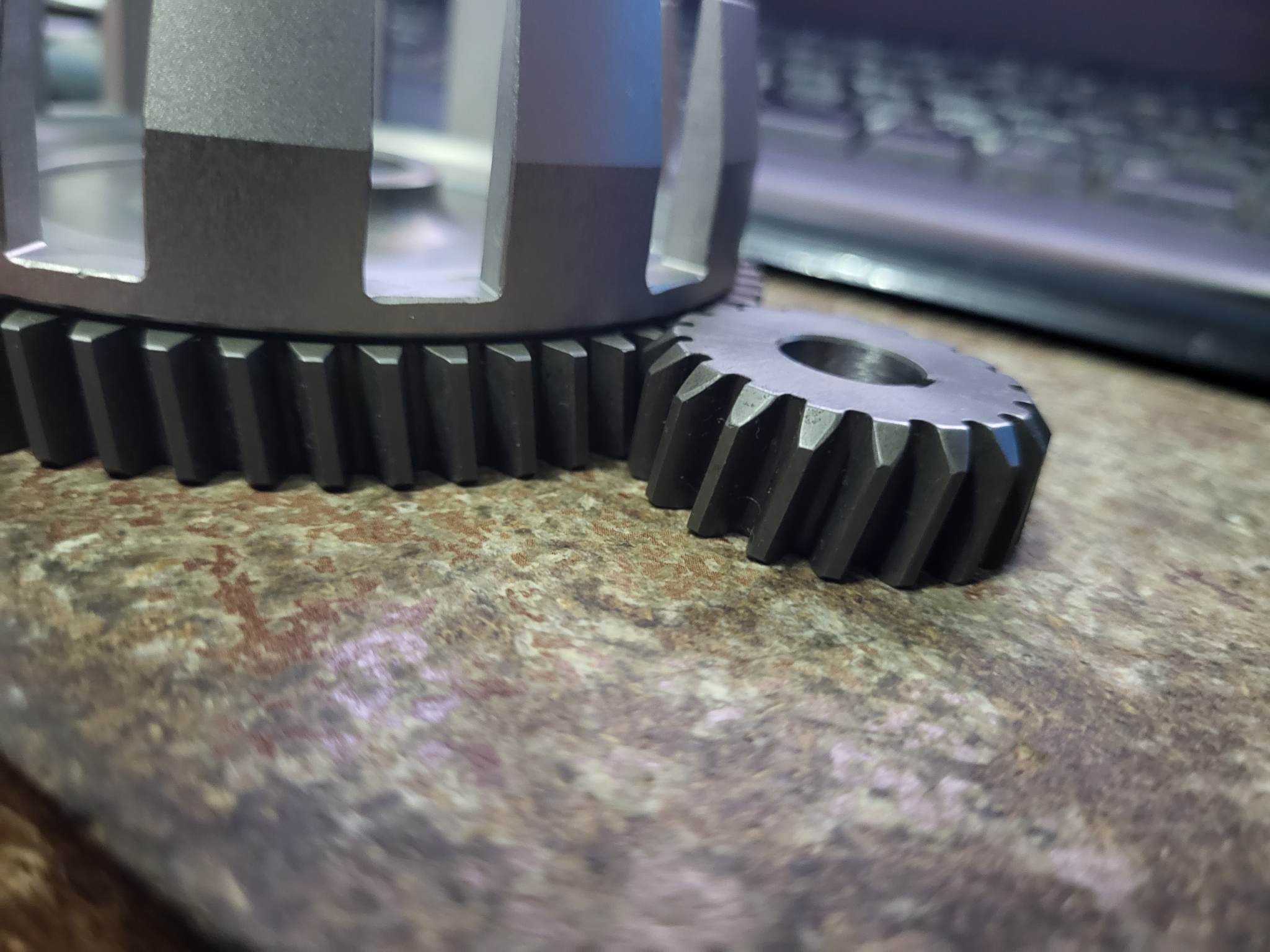 Ritzel, sowie Primärzahnrad sind gehärtet und fertig bearbeitet.