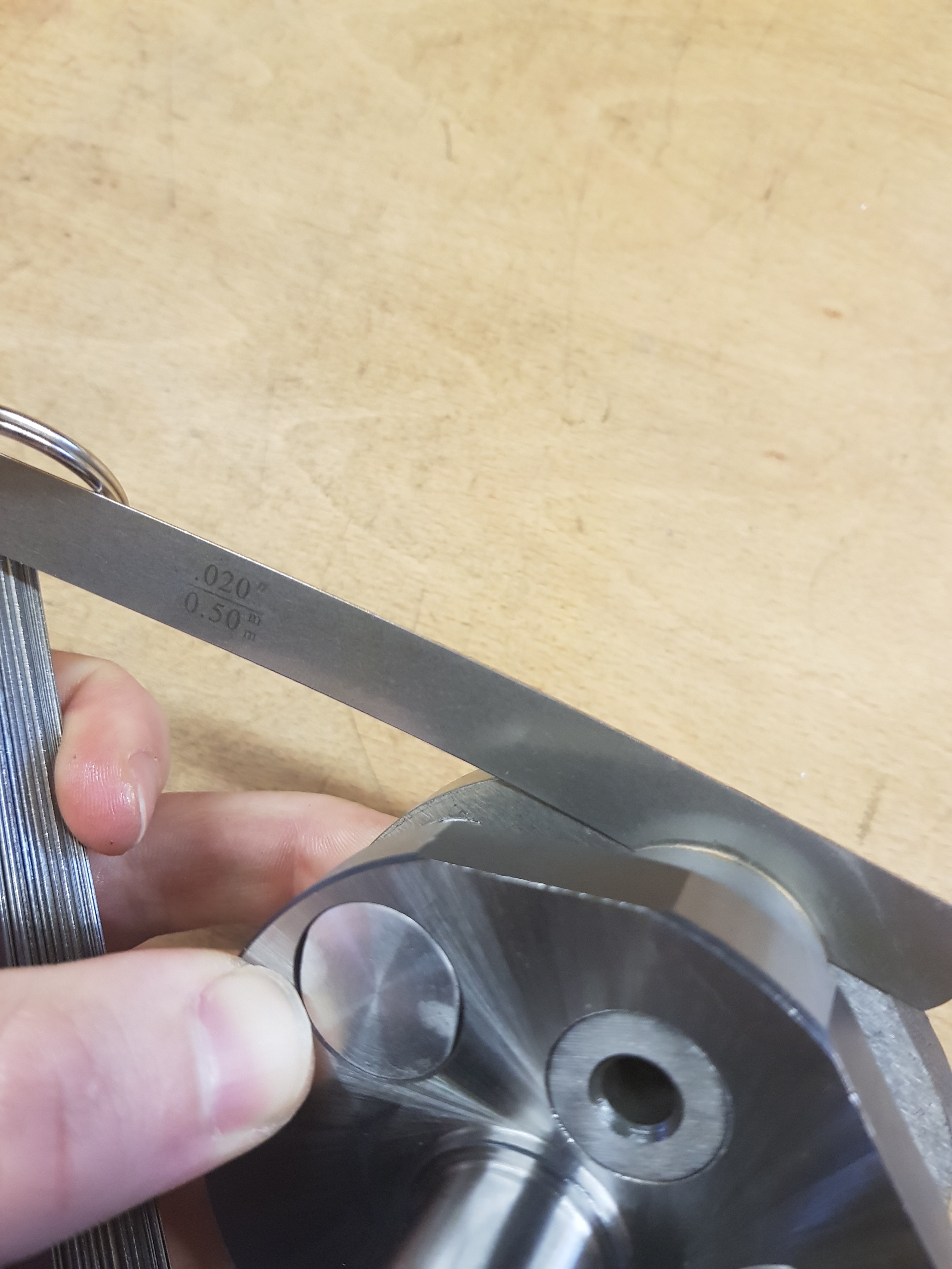 Das axiale Einbauspiel passt aber wieder super und misst weniger als 5 Zehntel mm. Die Fühlerlehre ging nur mit etwas Druck rein. Genau das Einbauspiel habe ich sonst auch bei unseren Mofawellen verwendet.
