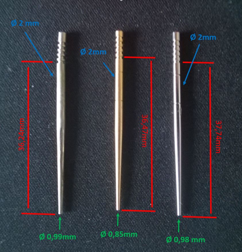 Da ich über Winter in meiner S51 Kraftstoff im Vergaser hatte, dachte ich mir für die Vorbereitung auf die neue Saison baue ich den Vergaser aus und reinige ihm. Dabei ist mir aufgefallen, dass die Vergasernadel am Oberen ende, leicht verbogen ist (siehe Bild linke Nadel).