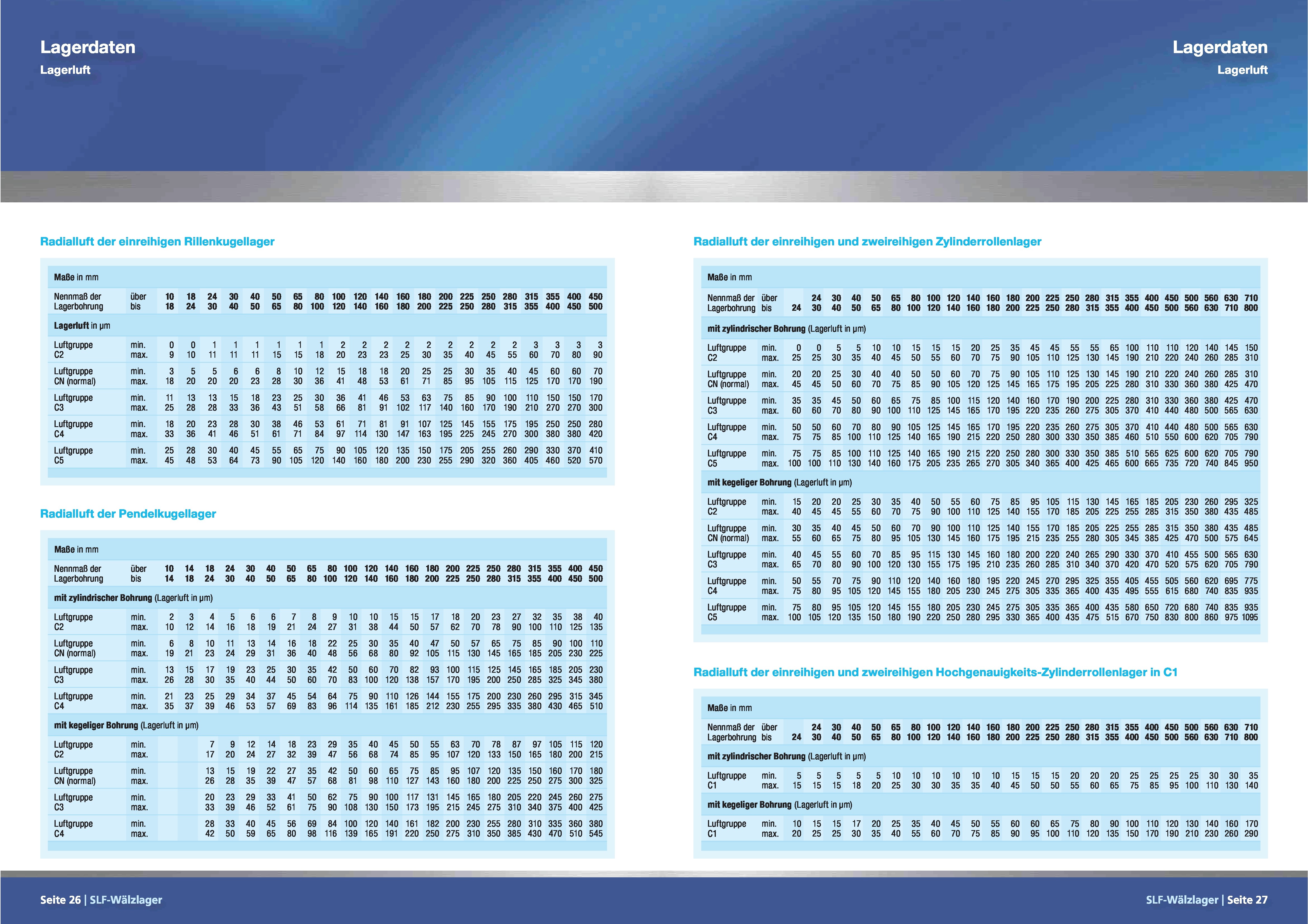 Bei den Lagerluftgruppen muss man aufpassen, da diese sich für Rillenkugellager und Zylinderrollenlager sehr stark unterscheiden.