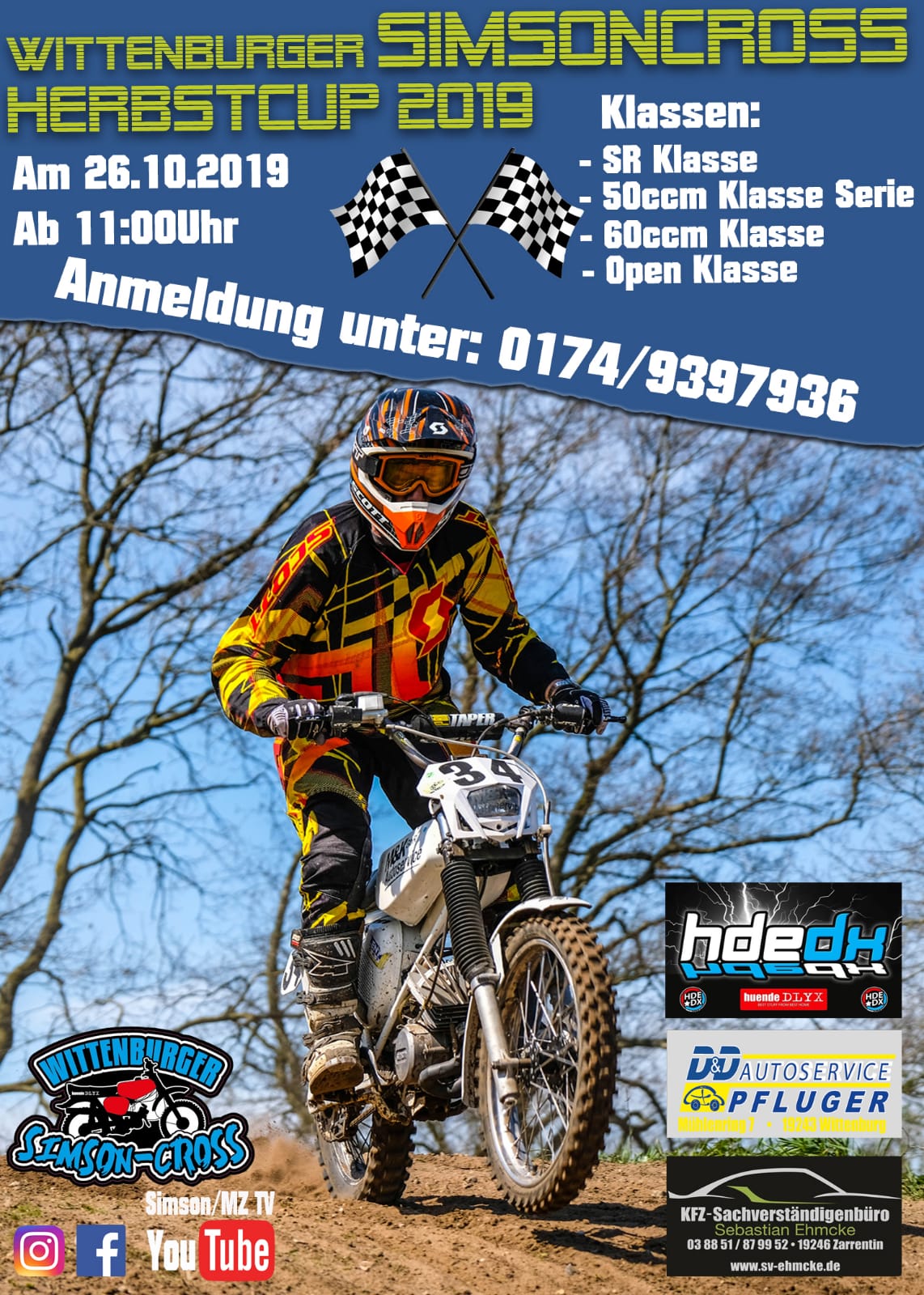 Am 26.10.2019 sind alle Simsonfanatiker eingeladen, wieder eine Nase feinsten Zweitaktduft zu inhalieren. Es steht das 23. Simson-Cross in 19243 Wittenburg (Strecke bei Dreilützow) an. Neben der etablierten, offenen Simsonklasse wird es ein weiteres Highlight in Form eines SR2/KR50-Rennens geben und das ZWEITE mal ein Gartenfräse Rennen. Die sogenannten "Essigpisser" sind allen Ostfahrzeugfreunden ein Begriff und sollen der guten, volksfestartigen Stimmung die Krone aufsetzen. Es wird ab 11 Uhr jeweils ein freies Training und zwei Wertungsläufe a 12min+2Runden ausgetragen. Am Ende des Tages gibt es ein Hauen und Stechen um den begehrten "Goldenen Helm" einen Wanderpokal,dessen Sieger mittels Handicap-Rennen ermittelt wird. Interessierte Simsonfahrer können sich ab sofort anmelden: 0174/9397936 (gerne per whatsapp oder telefonisch). Für Verpflegung in fester und vor allem flüssiger Form ist bestens gesorgt.