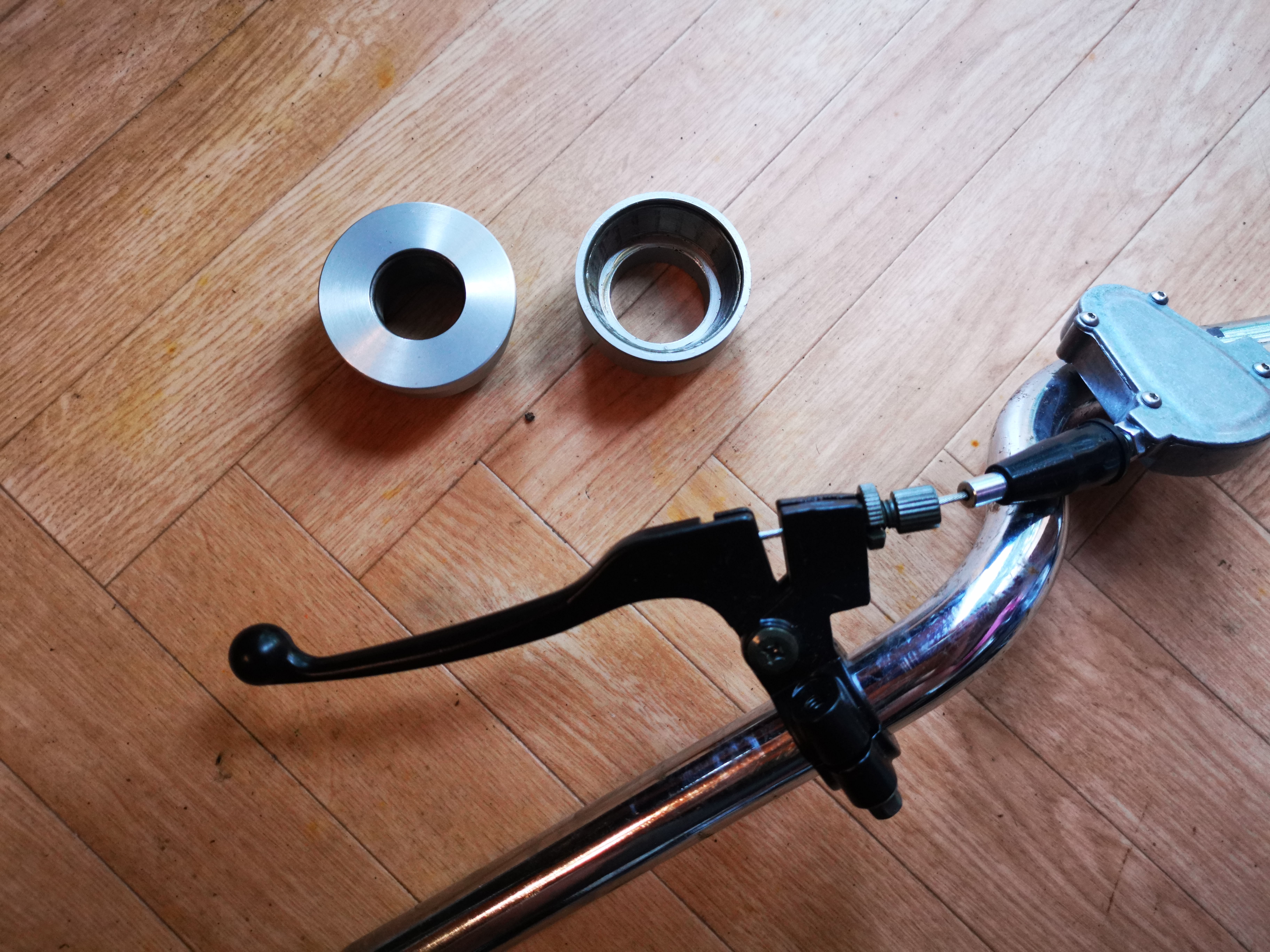Lenker wird ein Ori S51 Lenker mit 4€ Ebay Kupplungshebel, Easy Clutch System und rechts die normale Armatur. Im Hintergrund liegen die Kegelrollenlager, welche wohl mal vor Jahren bei LT gekauft wurden (waren zum Fahrwerk dazu).