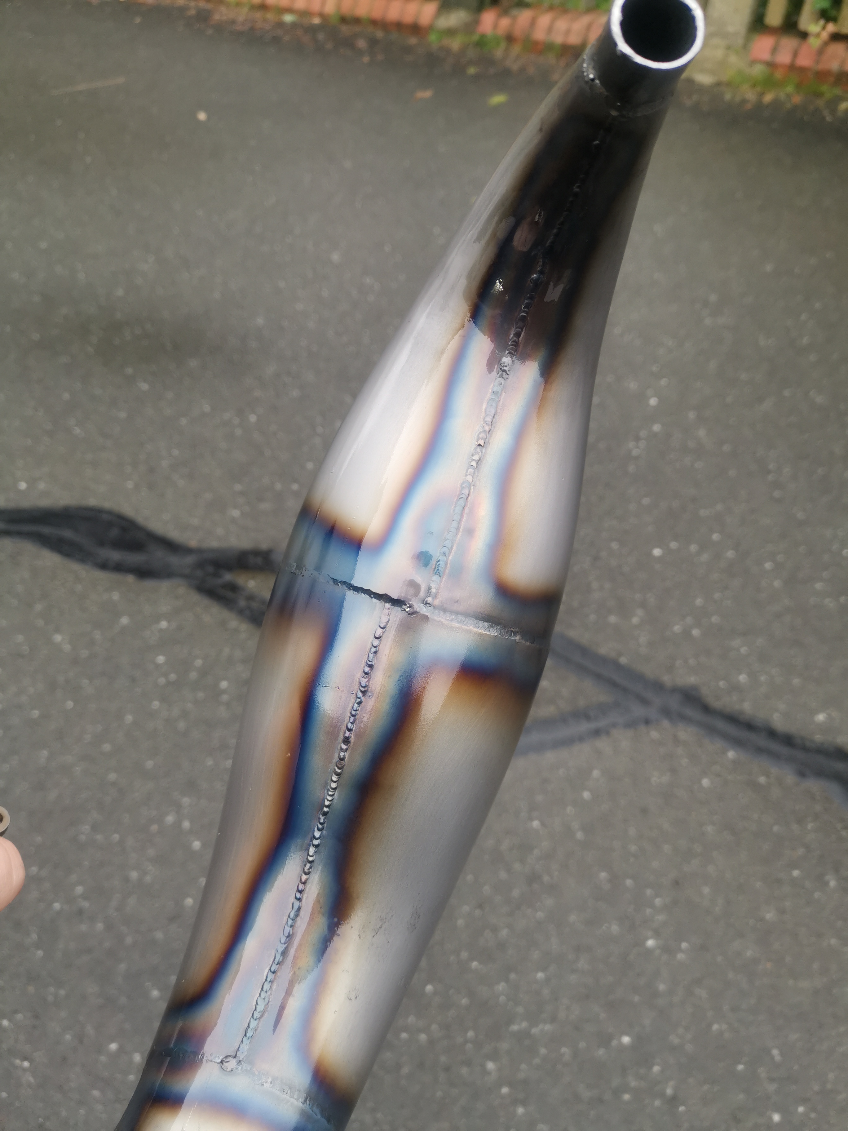 • So Auspuff schonmal hübsch gemacht. Das Ding hatte einiges an Rost, eine super gruselig angeschweißte Halterung, aber zum Glück keine nennenswerten Dellen.