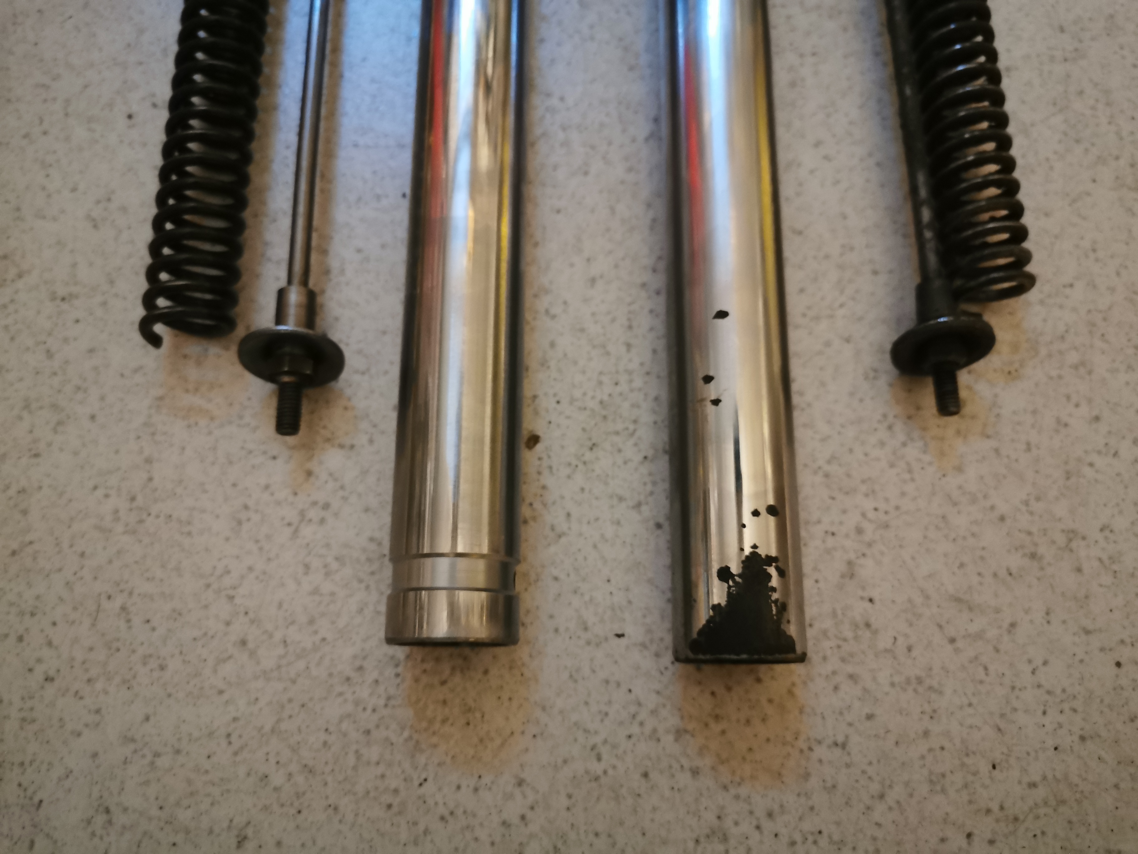 Heute ging es an den auseinanderbau der Telegabel. Es hat auch alles Problemlos funktioniert, aber dann ist mir aufgefallen das ich 2 unterschiedliche Tragrohre verbaut habe.