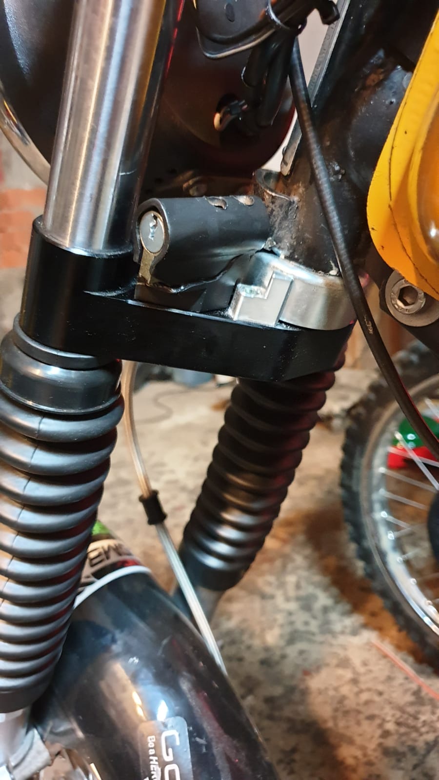 • Das hatte ich dem Prüfer auch mitgeteilt, aber er meinte wenn eins ab Werk dran war, muss bei der neuen Gabelbrücke auch eins vorhanden sein.