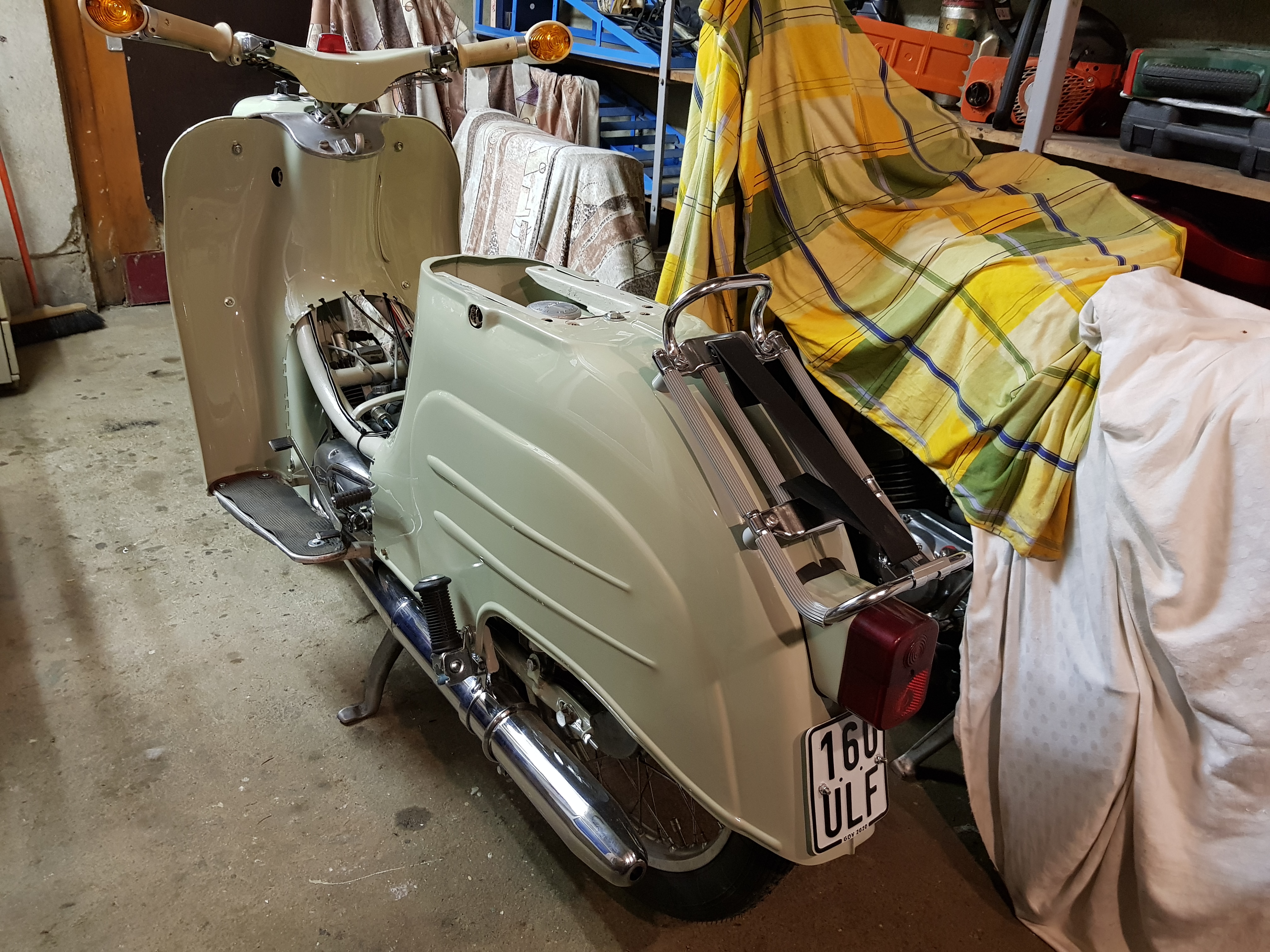 Ist eine KR51 Bj 66. Diese war bzw ist mein aktuelles Projekt. Ist noch nicht ganz fertig, fehlen noch ein paar spezifische Teile die an eine 66er gehören. Zb stoßdämpfer vorn, kurze Sitzbank etc. Motor ist komplett regeneriert. Der originale Dreiecksflansch ist verbaut.