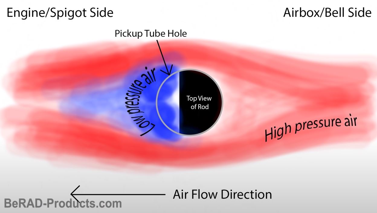 Die spezielle Nadel (Metering Rod) taucht in eine Art Düsenstock (Pickup Tube) ein.