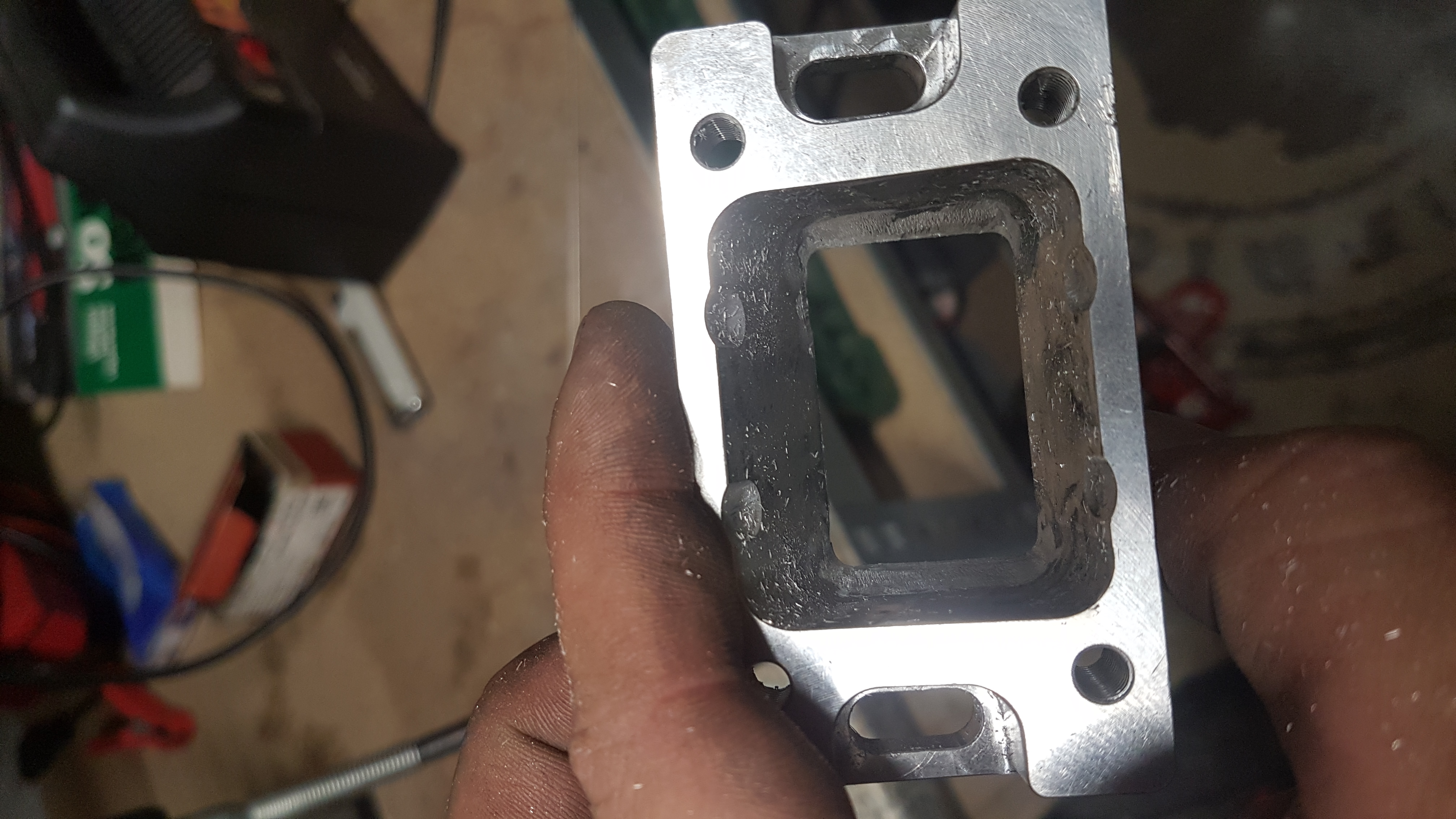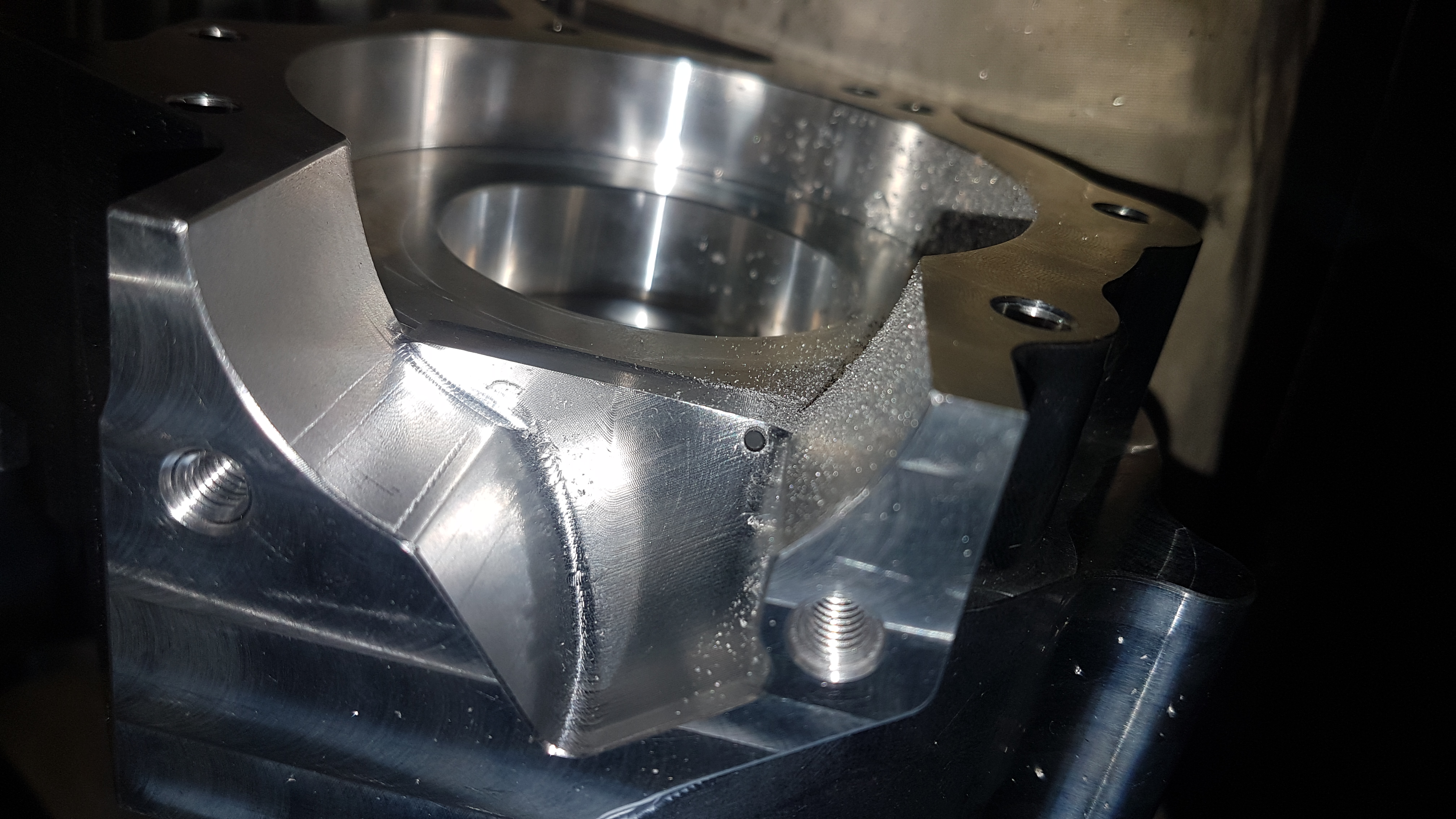 Damit der Kolben im OT Bündig mit der Laufbuchsenoberkante ist, muss noch eine 7.5mm Distanzplatte her. Passend zum Billet Gehäuse..siehe Bilder