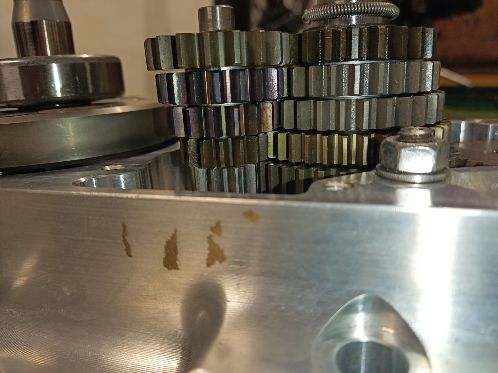 Auf die Kurbelwelle kommt nich eine Distanzscheibe, ich habe vorher ausgemessen und gebe der Kurbelwelle 3/10mm Luft.