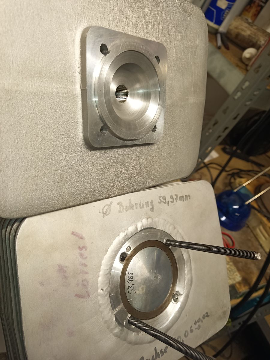 Der Fächerkopf hat eine Zentrierung bekommen welche in den Kühlkörper passt (die Buchse schaut nicht aus dem Kühlkörper sondern hat einen Absatz, das Alu ragt einen Milimeter über den Buchsenbund)