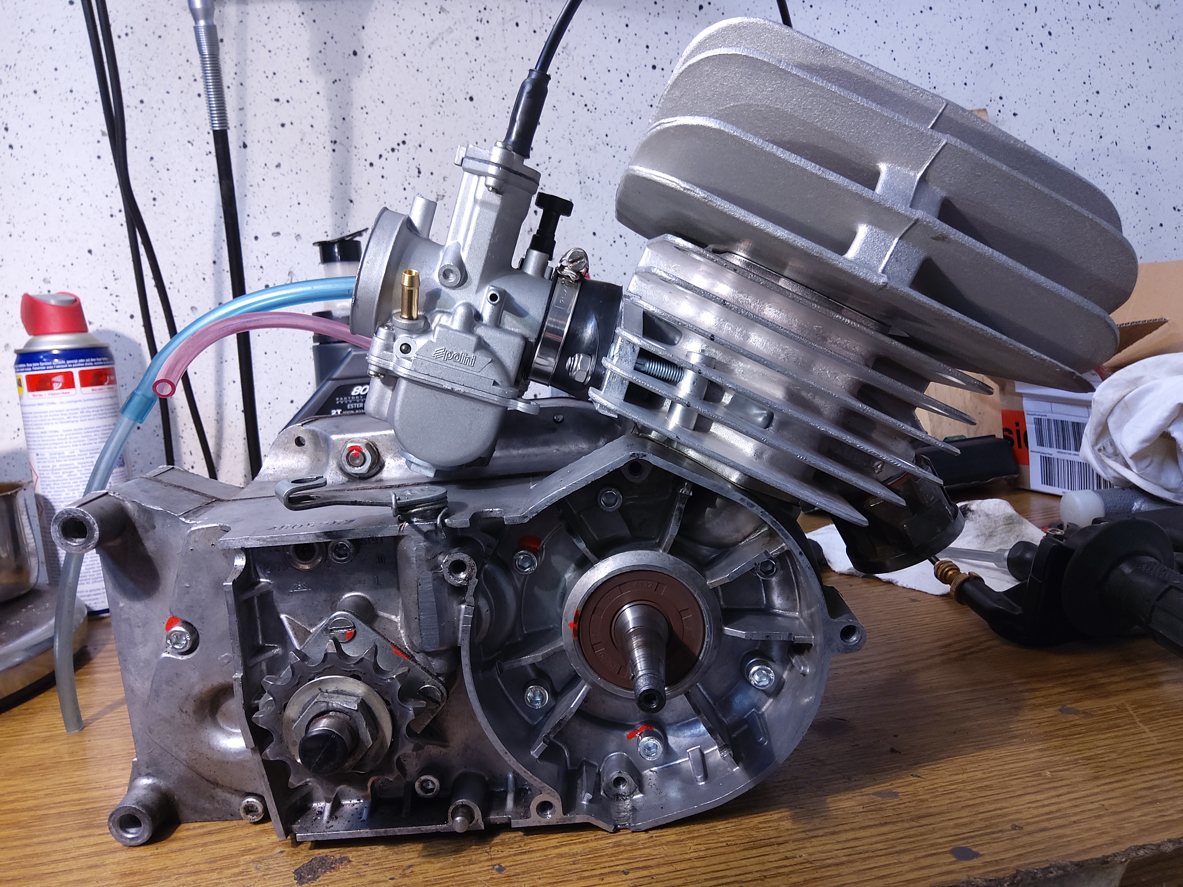 So hat man gerade genug Platz, dass ein großer Vergaser nicht auf dem Motorgehäuse anschlägt