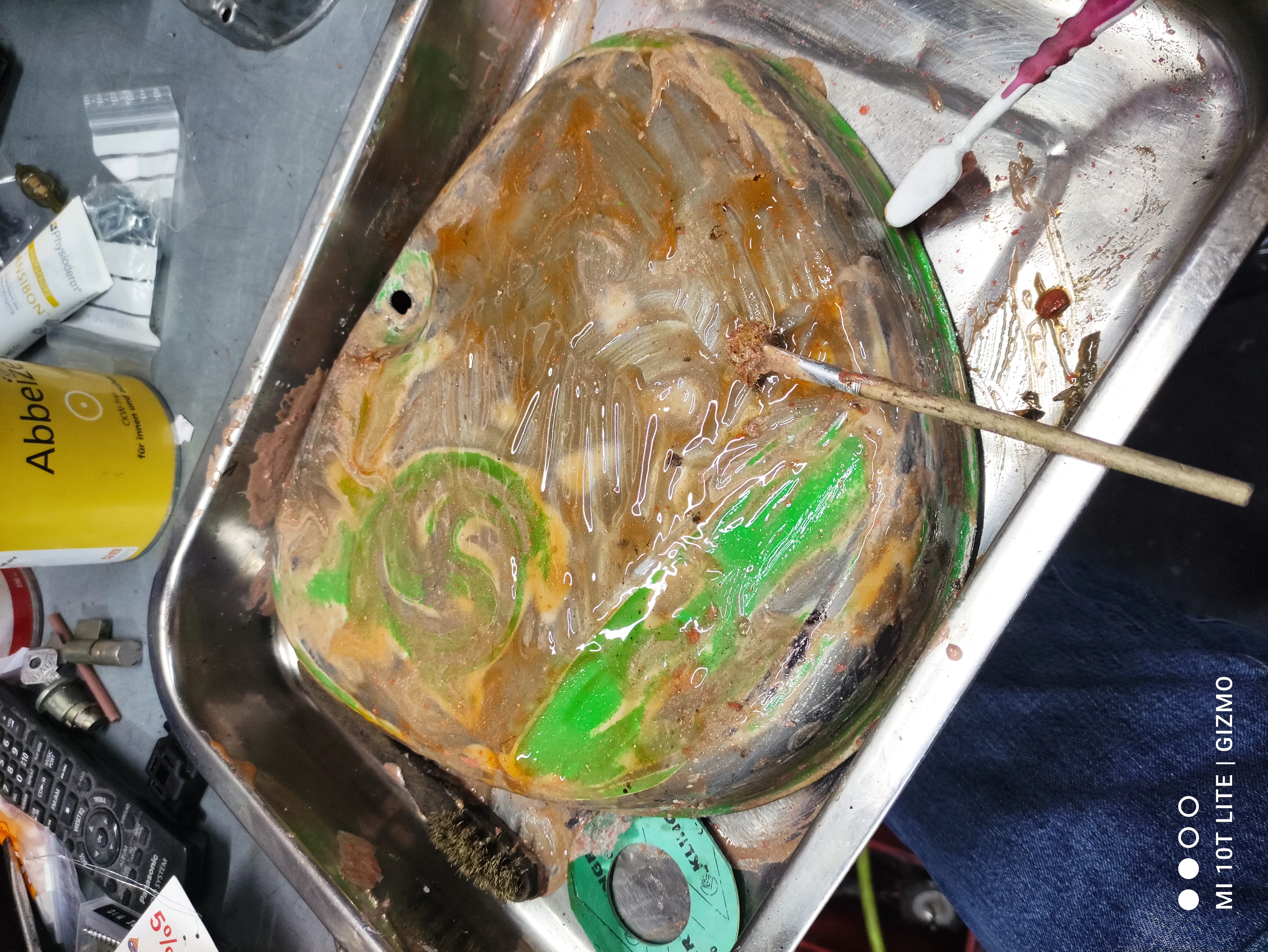 Jetzt bin ich mal mit Aceton bei gegangen ... und man schau an ... unter dem Srühdosen Lack kommt der originale Lack zum Vorschein 😍