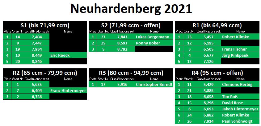 • Okay, ich hatte nämlich mit deutlich besseren Zeiten gerechnet. Aber wenn da auch auf dem Blanken Beton gestartet wird ist es von der Strecke ja kein Unterschied zu Neuhardenberg.