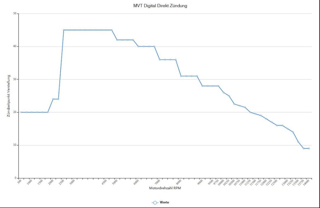 Was man mit so einer digitalen Zündkurve erreichen will ist eine VERBREITERUNG des Resonanzauspuffs. Mit einer so unpassenden Kurve erreichst du aber eher das Gegenteil, also eine VERSCHMÄLERUNG des Leistungsbereiches weil entweder passt es untenrum überhaupt nicht oder obenrum überhaupt nicht (mit überhaupt nicht meine ich, dass die Zündung nicht 3-4° daneben liegt sondern 12-15° neben dem Idealwert. Das sind Größenordnungen die nicht funktionieren. Mit der analogen Version und ihrer kontinuierlichen Spätverstellung bist du zwar nie perfekt, aber überall viel weniger weit vom Idealwert weg, daher geht die dort besser.MFg RZT