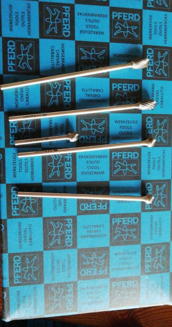 Ich habe die Langschaft Frässtifte von Pferd schon eine Weile in Gebrauch. Durch den 75mm langen Schaft kommt es bei mir aber immer wieder vor, das der Fräser sich bei etwas höherer Drehzahl gerne mal verbiegt wenn er mal kurz gehakt hat. Sobald der Schaft minimal schräg ist erledigt die Drehzahl ihr übriges und der Fräser verbiegt. Der Schaft ist aber so weicht, das man ihn ohne weiteres mit viel Gefühl wieder gerade biegen kann. Das funktioniert dann halt wieder so lange bis er wieder anfängt mit springen. Wie sind eure Erfahrungen mit den Fräsern von Pferd und gibt es Alternativen?
