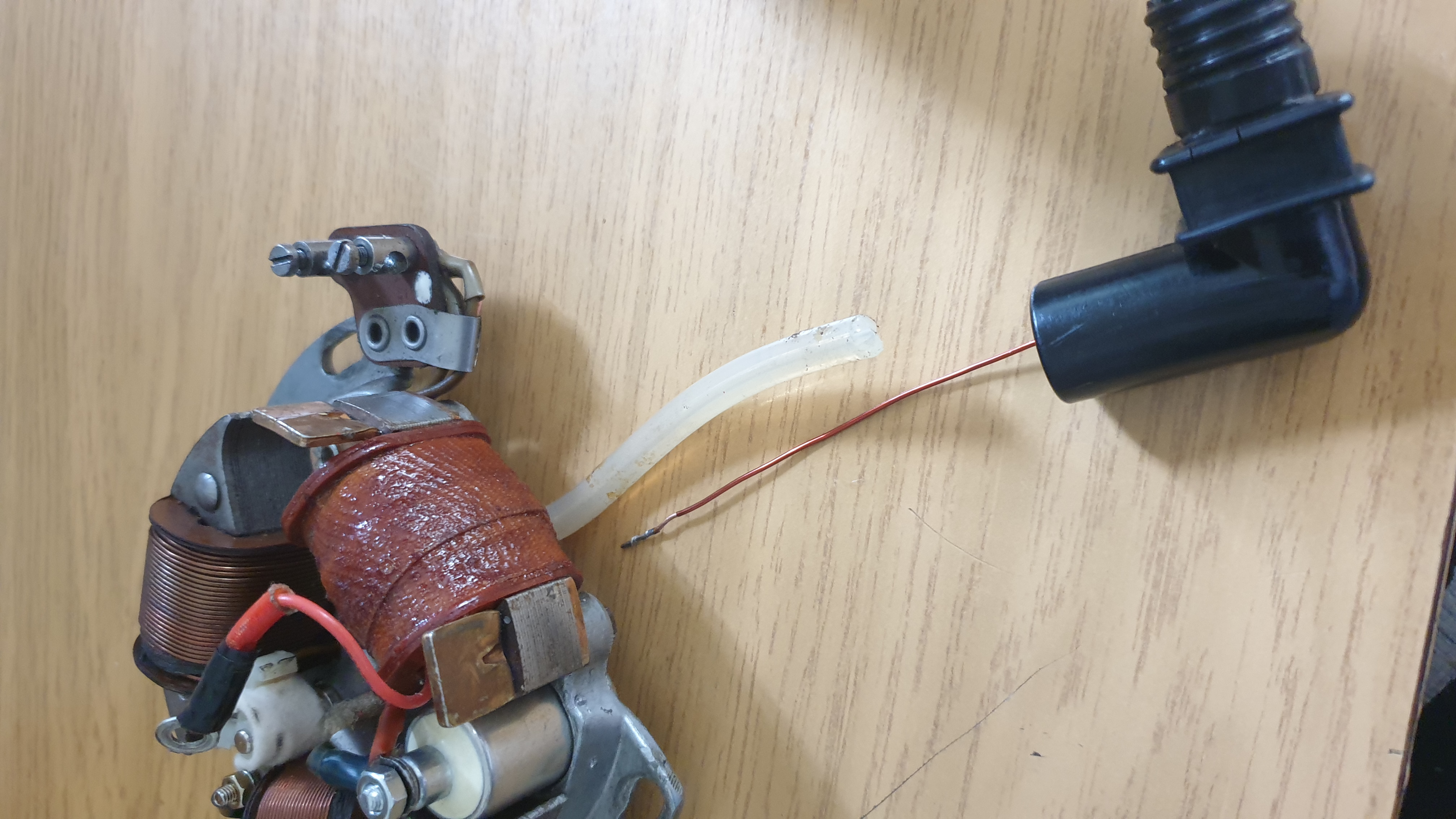 Und siehe da, das Zündkabel ließ sich ganz einfach aus der innenliegenden Zündspule heraus ziehen... ( siehe Foto)