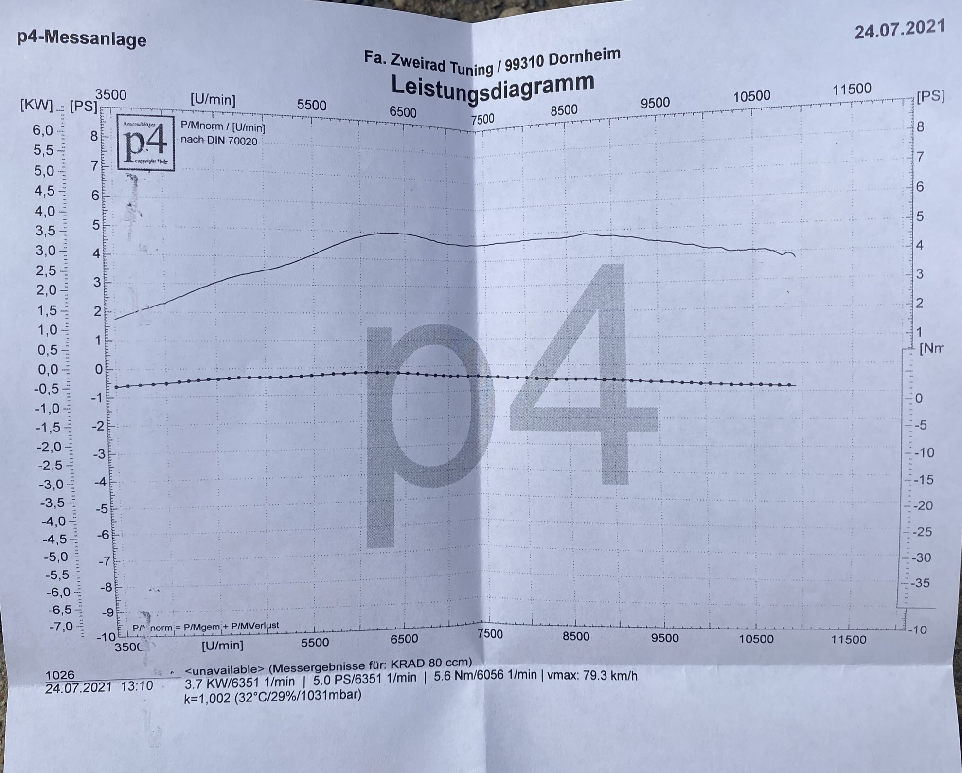 Ich hatte gestern auf dem Simsontreffen in Stadtlegsfeld meinen SR2 mal auf dem Prüfstand. Denke das Ergebnis kann sich sehen lassen. Leider habe ich vergessen, die Radkurve ausdrucken zu lassen. Den Zylinder hat mir Boratommi gebaut. Der Zylinder wird mit einer 44mm Welle von RZT und einem 18er Amal Vergaser gefahren, Zündung ist eine Powerdynamo und der Auspuff von einer S51. Fährt sich wunderbar auf der Straße hier in der bergigen Rhön.