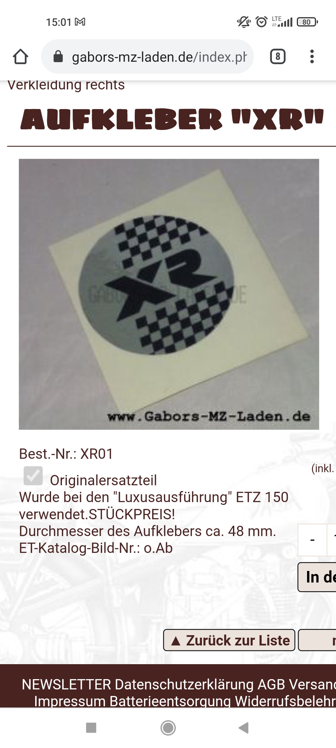 Ich hatte zu Ost Zeiten eine 150er ETZ in XR Ausführung. Der Aufkleber war auch dran.