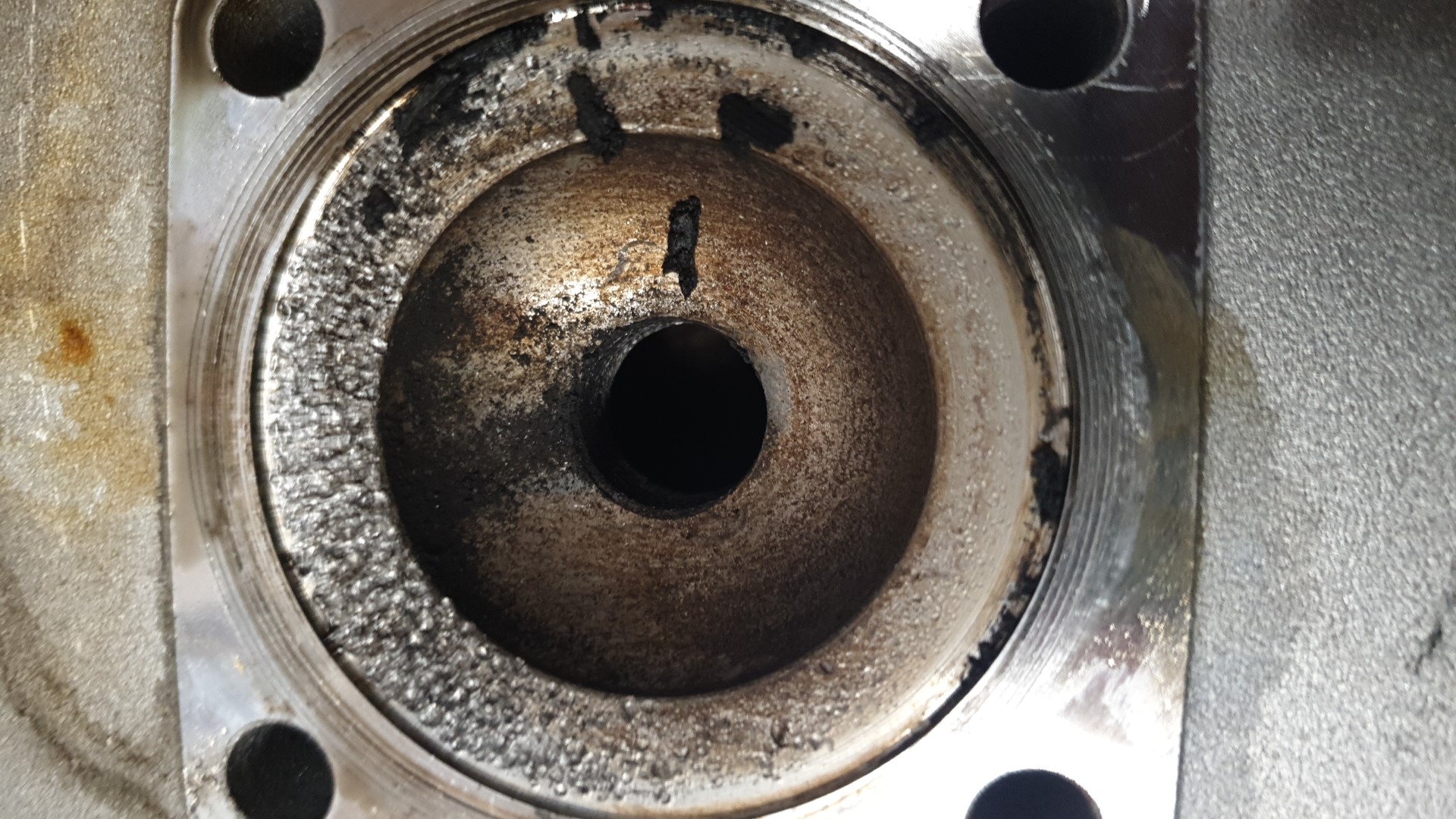 Verbaut war ein Almot 65ccm Zylinder (Stempel 372565) mit einem Kolben (Stempel 44.97). Auf dem Kolben respektive auf dem Zylinderkopf sind eindeutige Metallspuren zu sehen --> siehe Fotos.