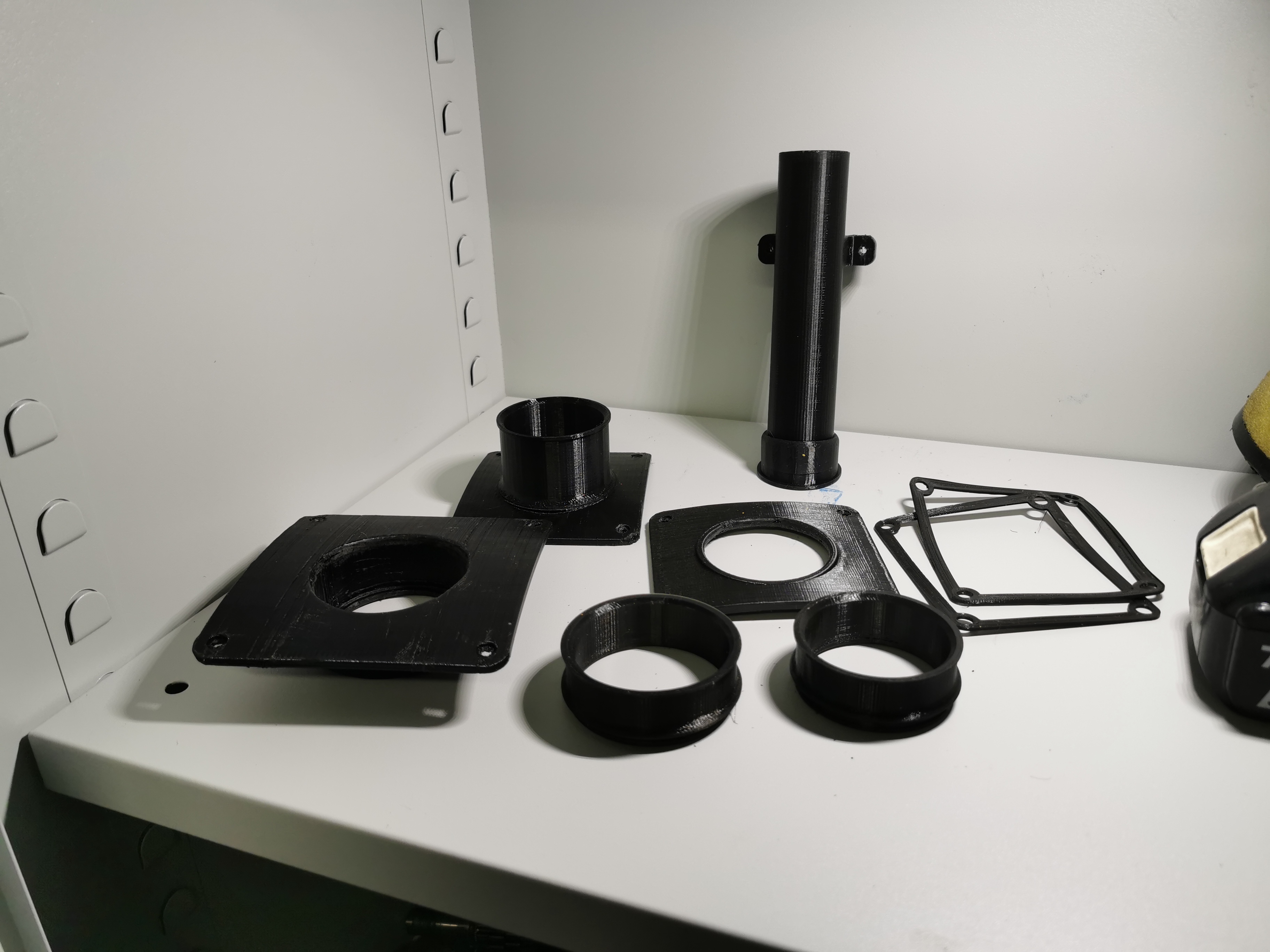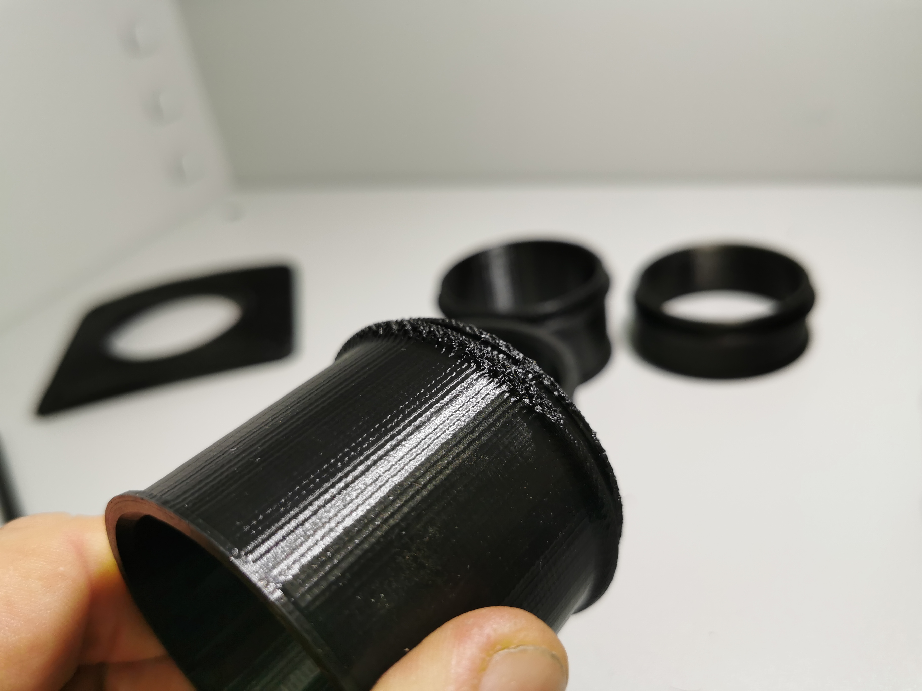 Die Kunststoffteile sind alle aus dem 3D Drucker. Geil, was sich da einer für Gedanken macht. Ich weiß nicht, wer solche Teile schonmal in der Hand hatte aber dass das Filament an der Oberfläche Fäden zieht und durch anschleifen begradigt werden muss ist doch nichts Neues.