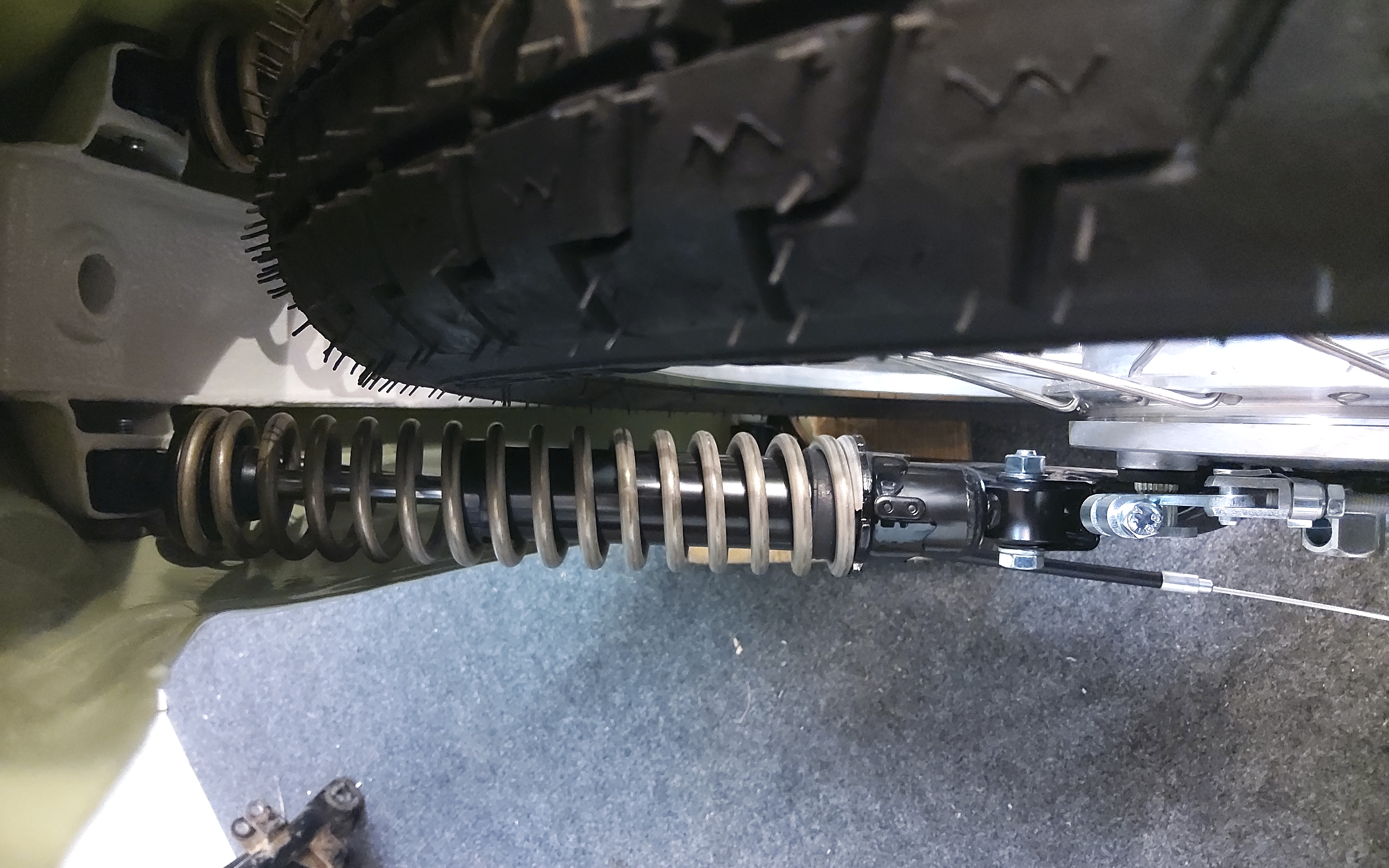 Die Dämpfer sind von YSS. 300mm lang. Hydraulisch. Dicke Kolbenstange. 70mm Hub.