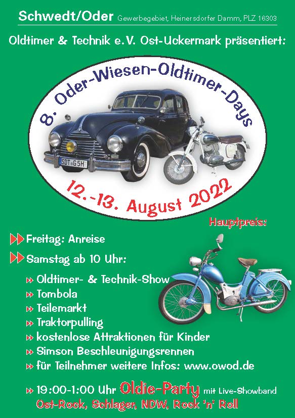 13. - 14.08.2022 - Oder Wiesen Oldtimer Days in Schwedt